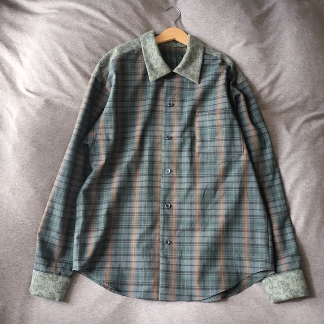 カジュアルシャツ ペイズリーチェックと花