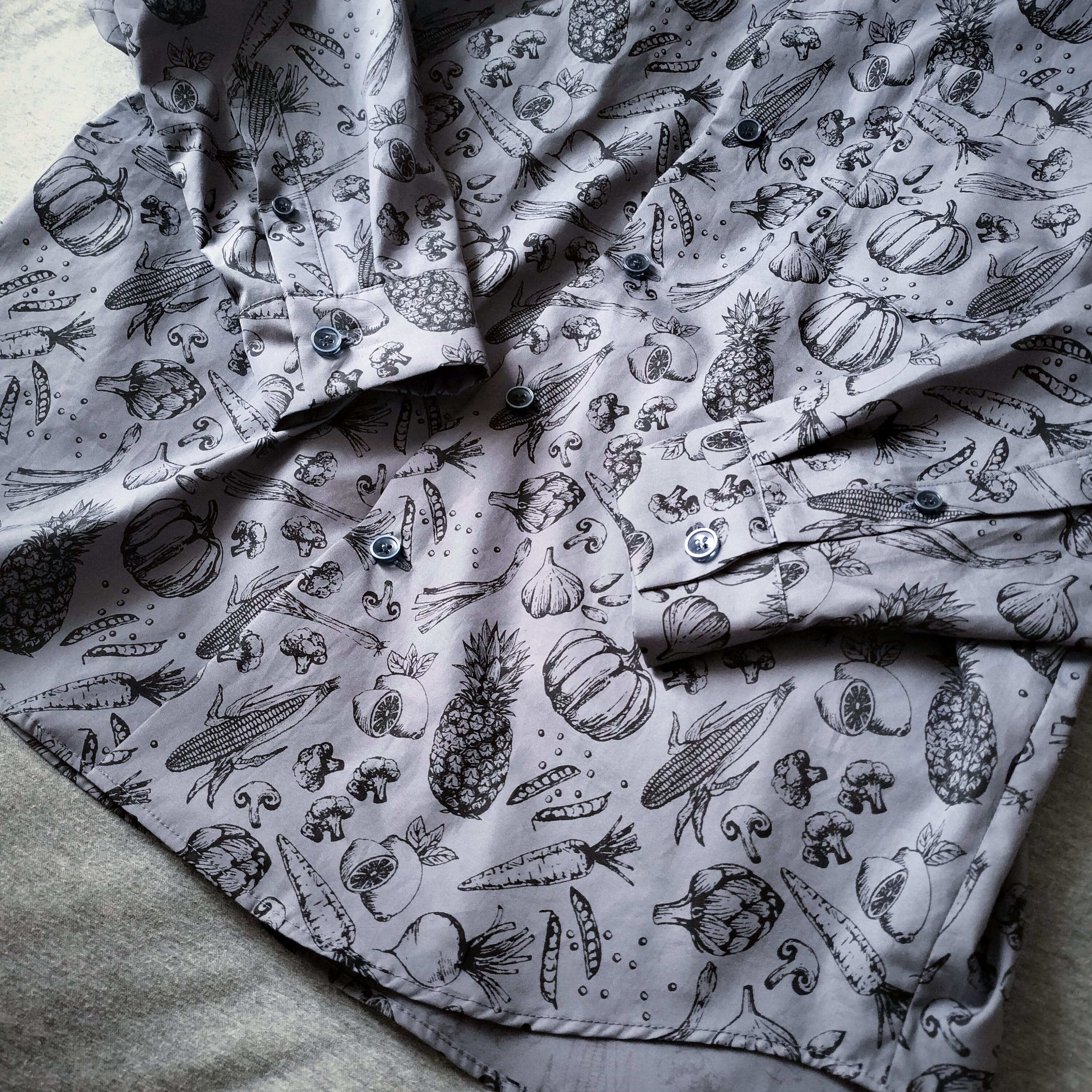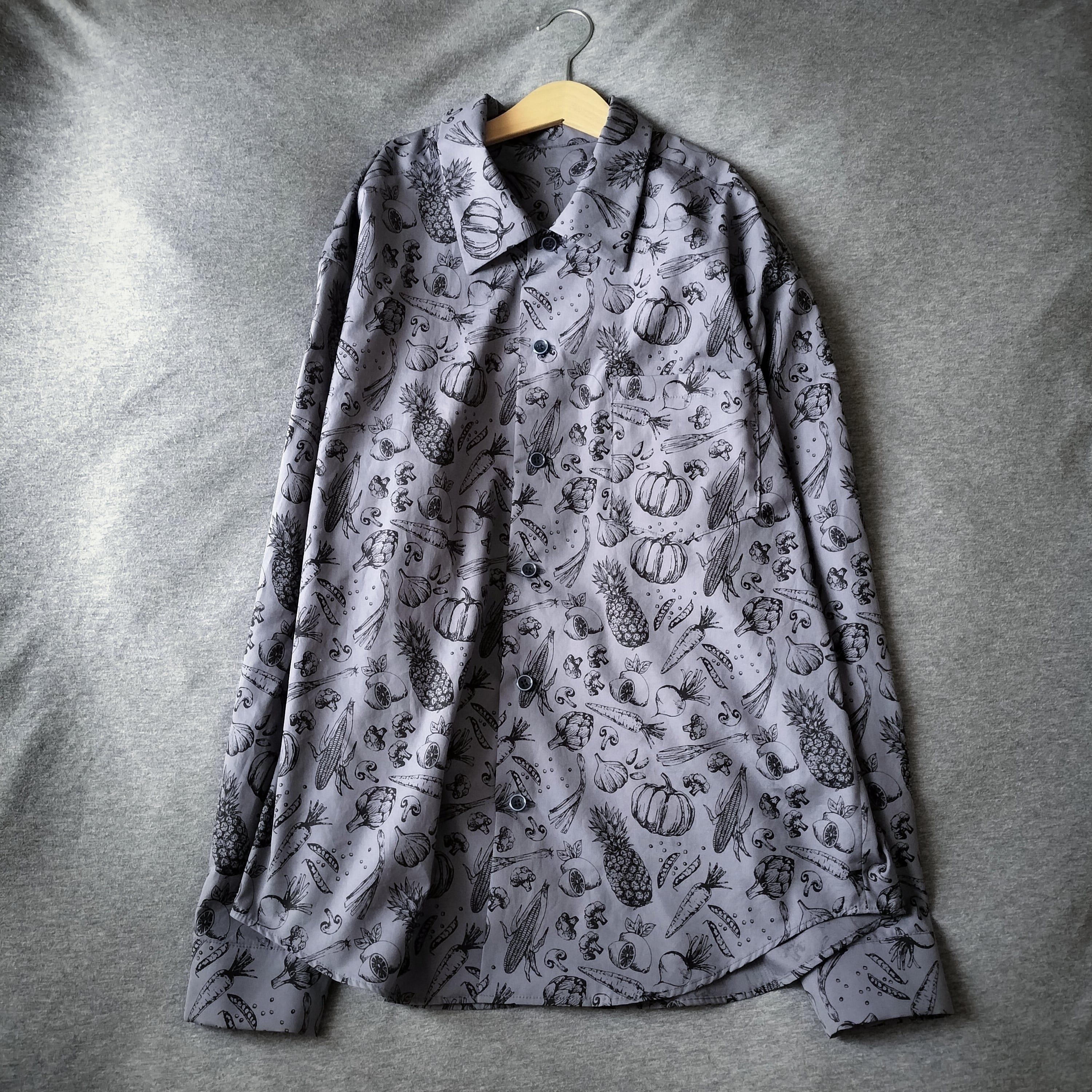 野菜柄 シック 長袖シャツ シャツ 柄シャツ 個性的 おしゃれ 一点物 男女兼用 古着風 メンズファッション