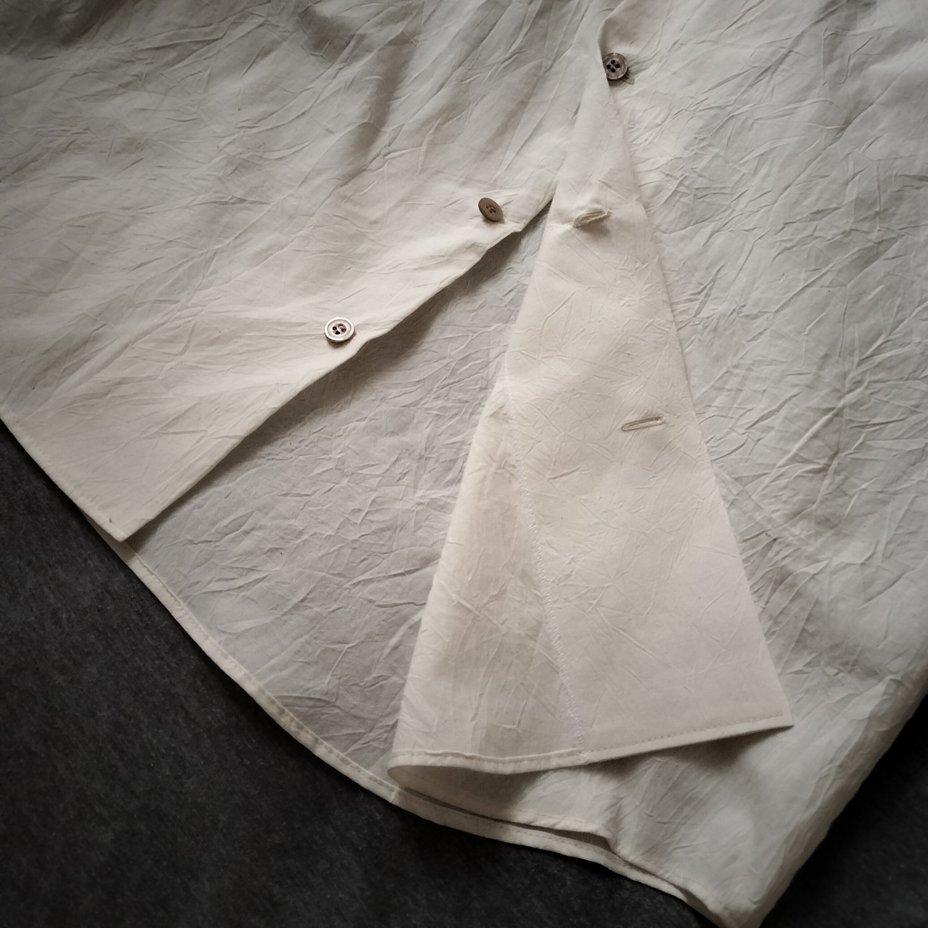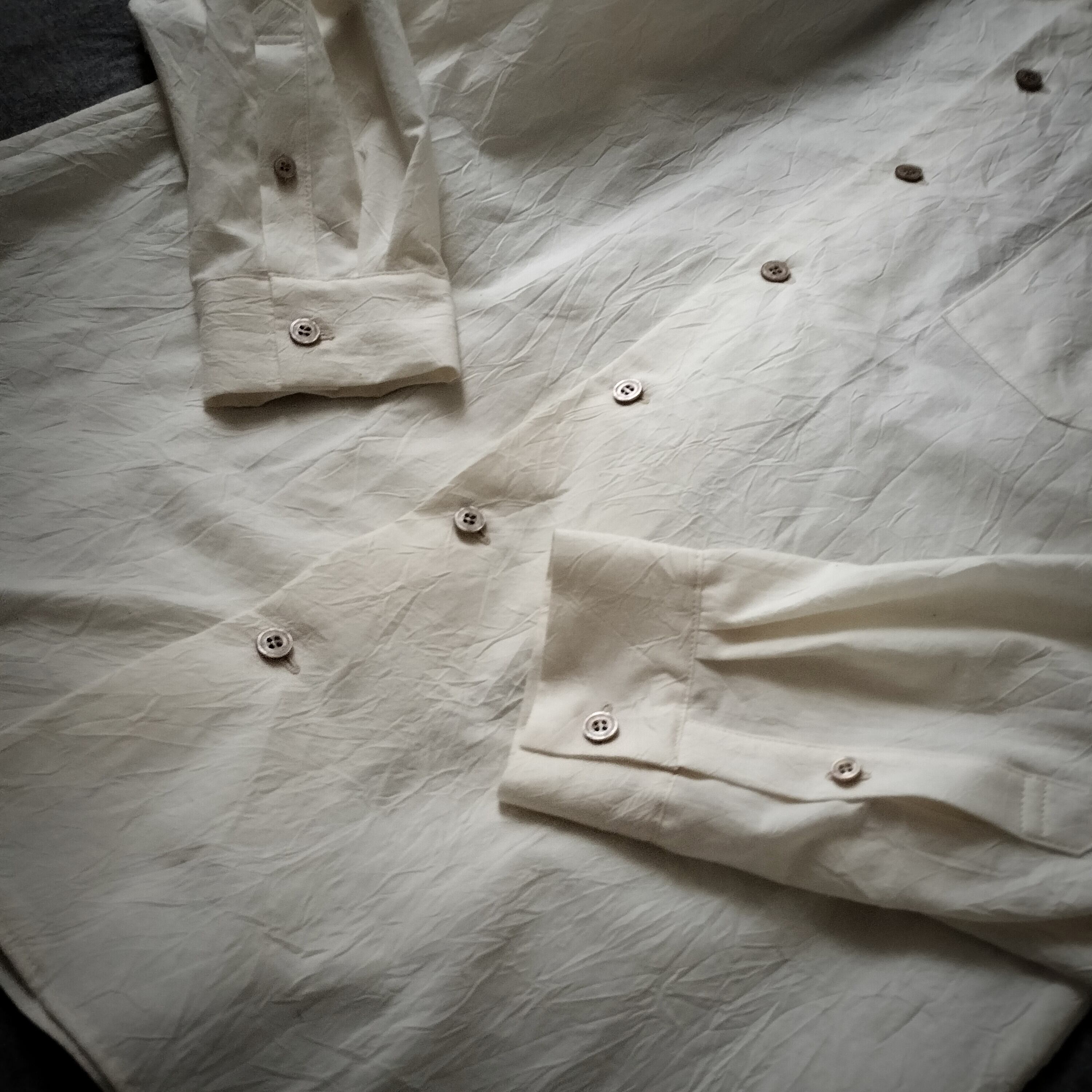 ワッシャー加工を用いて、無地だけど味のあるおしゃれを演出するシャツを製作しました。