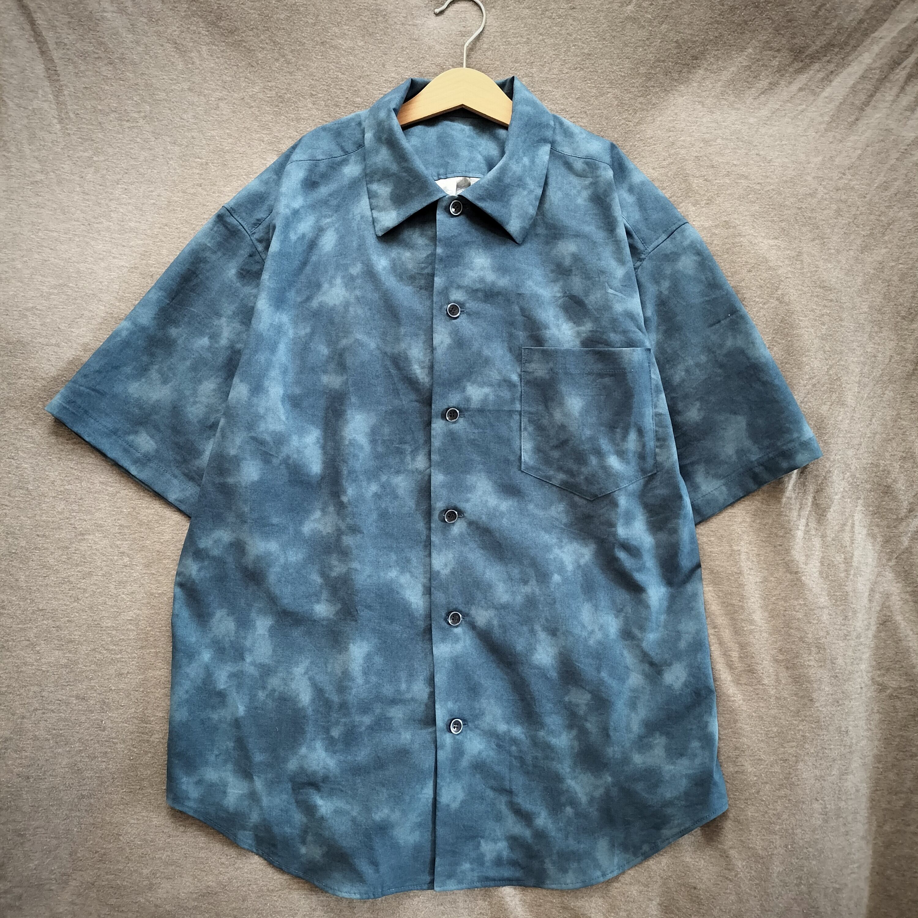 組み合わせ レトロ アート柄 半袖シャツ シャツ 柄シャツ 個性的 おしゃれ 一点物 パッチワーク 男女兼用 コットン 綿 古着風 メンズライク