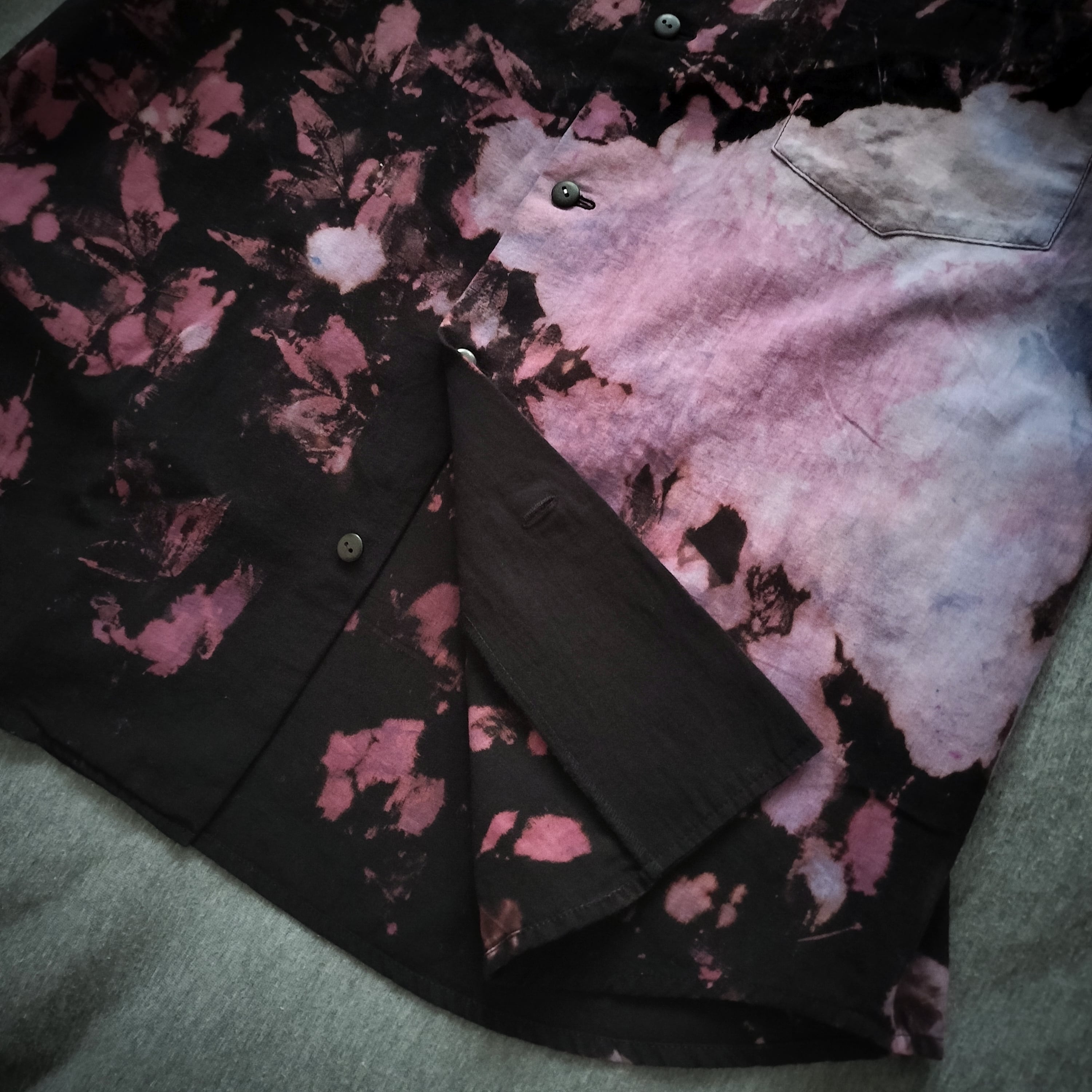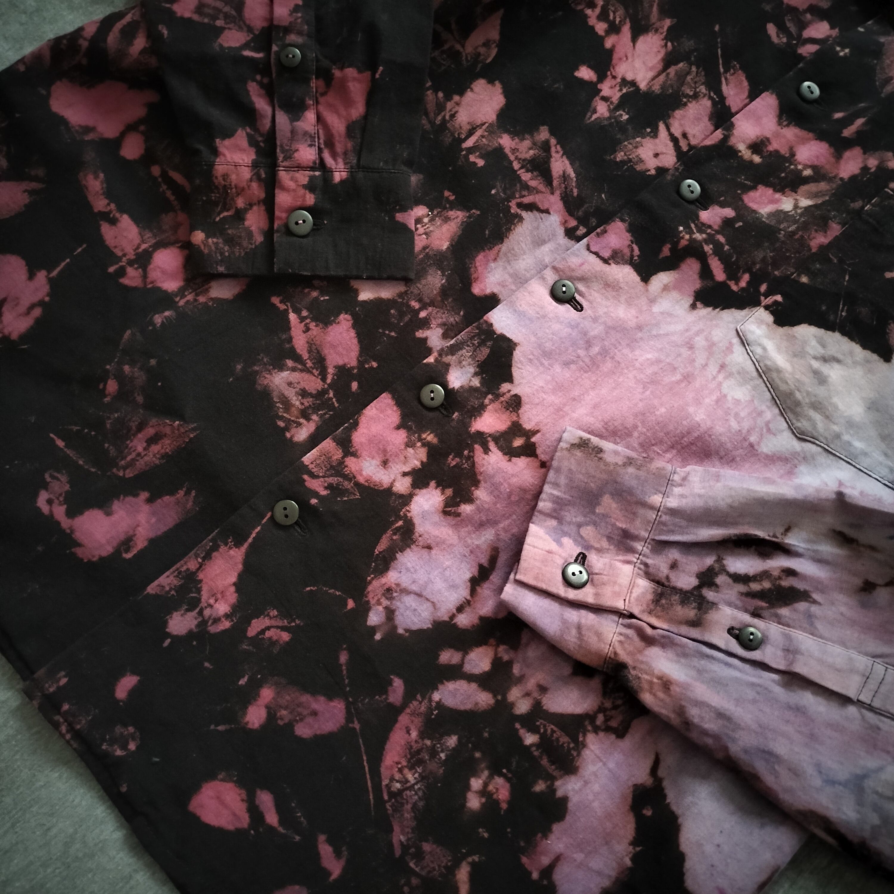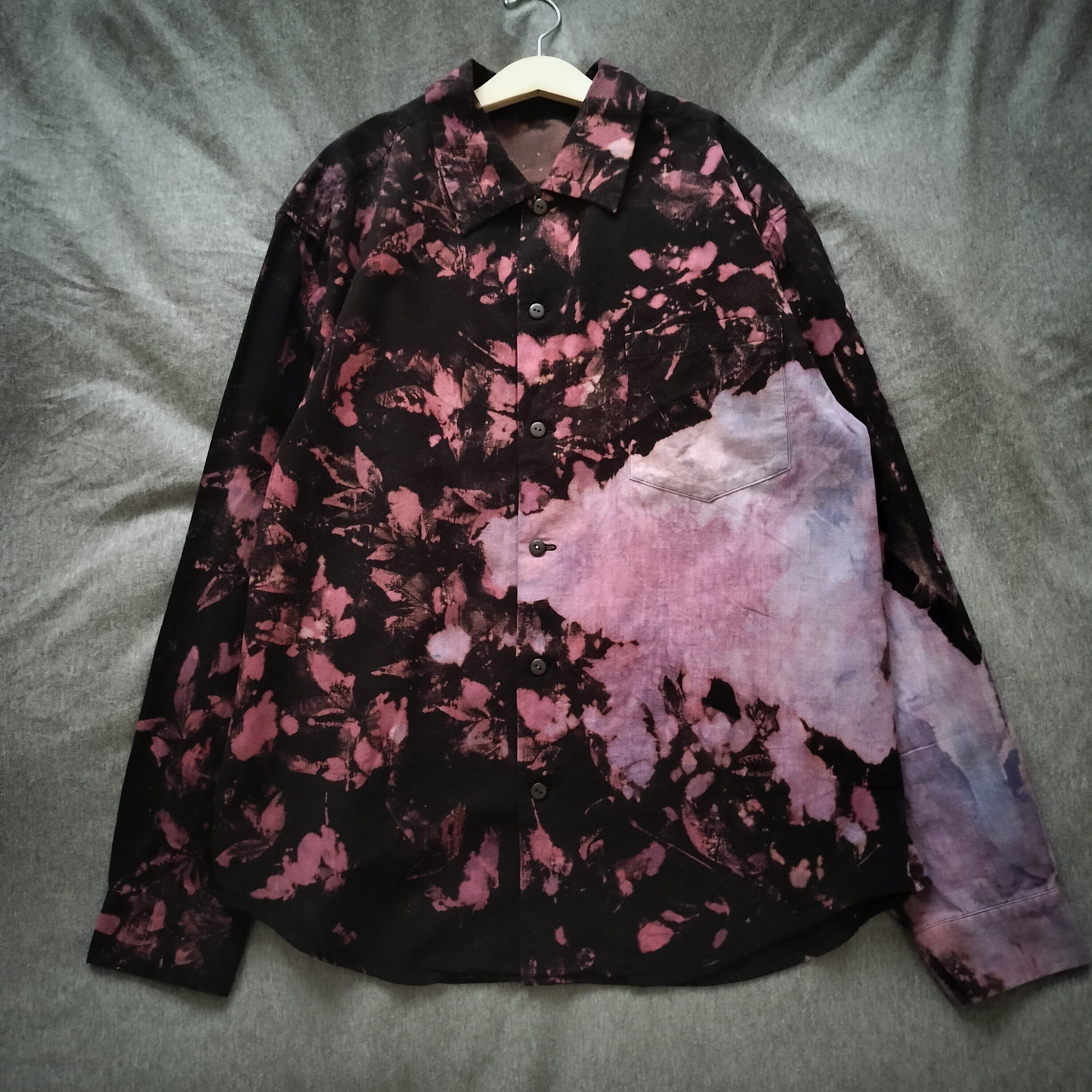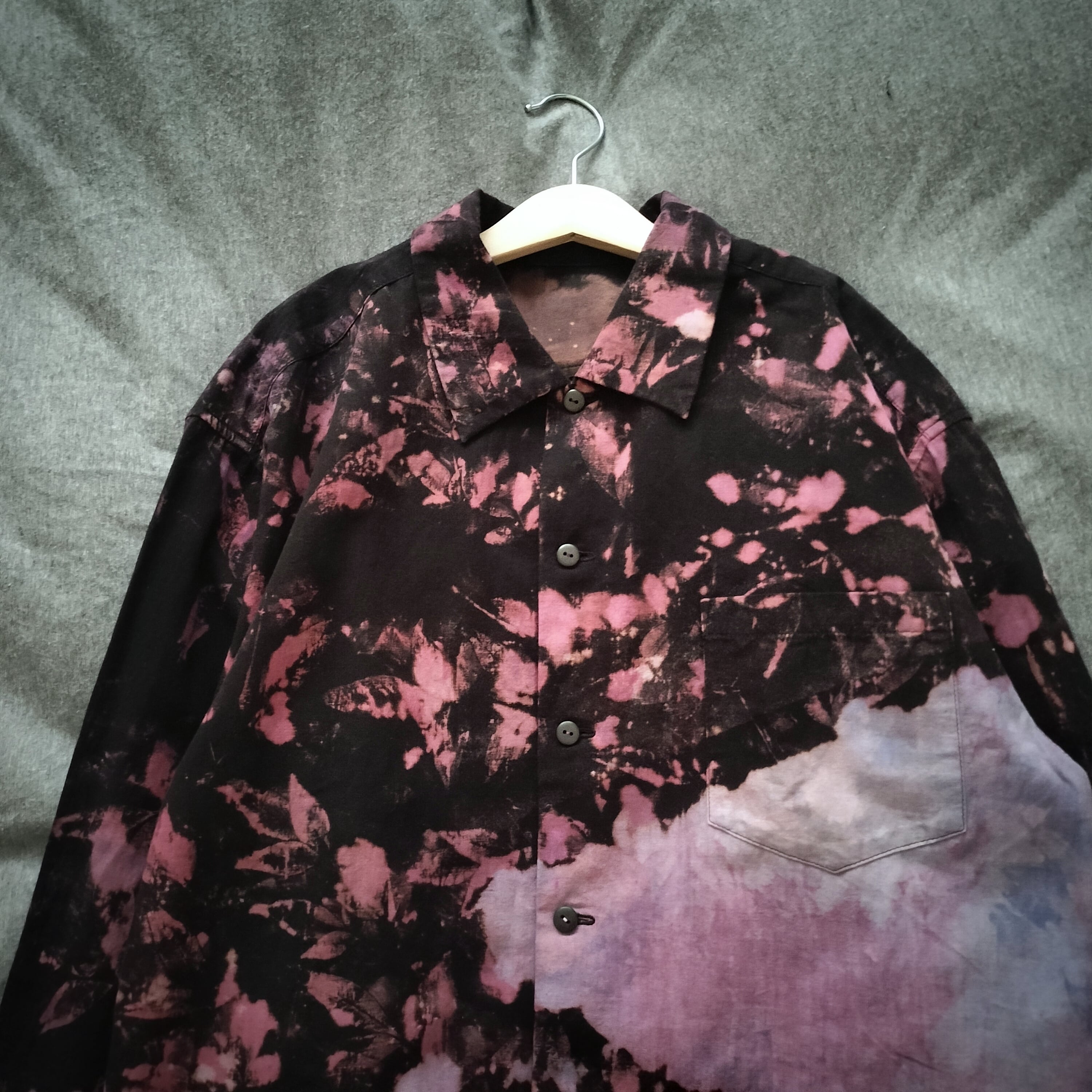花柄 シック 長袖シャツ シャツ 柄シャツ 個性的 おしゃれ 一点物 男女兼用 綿 麻 古着風 メンズファッション レトロ 染色