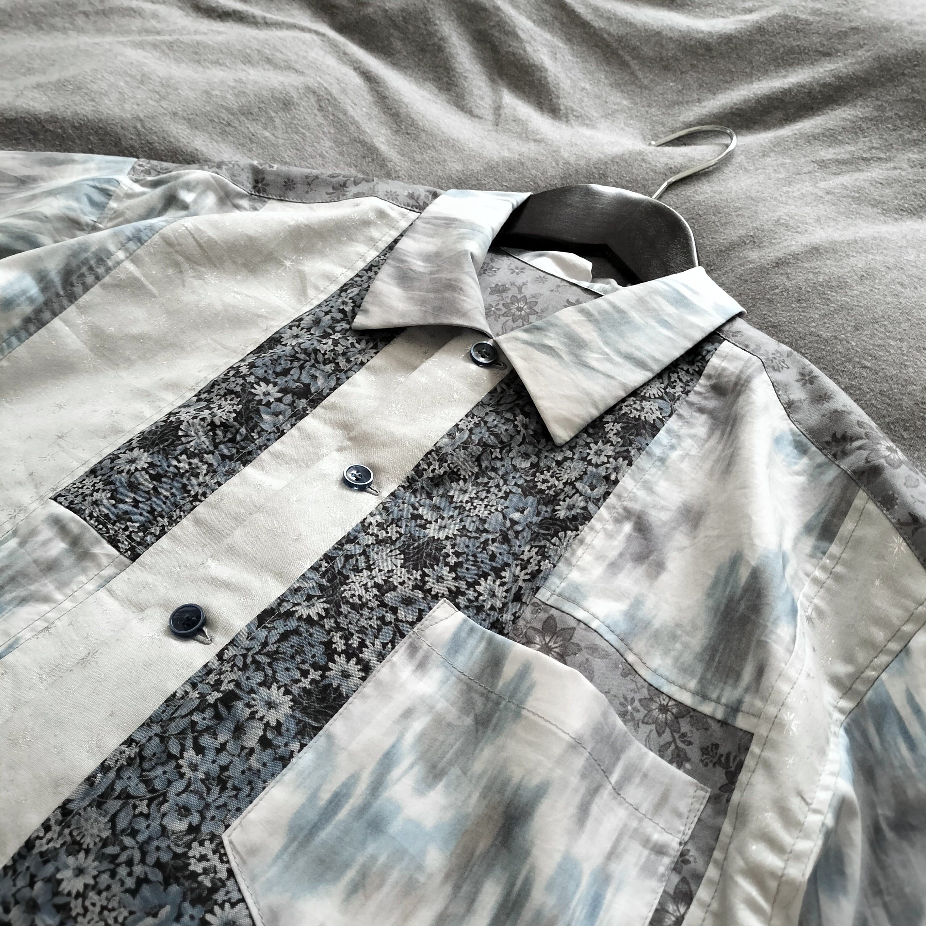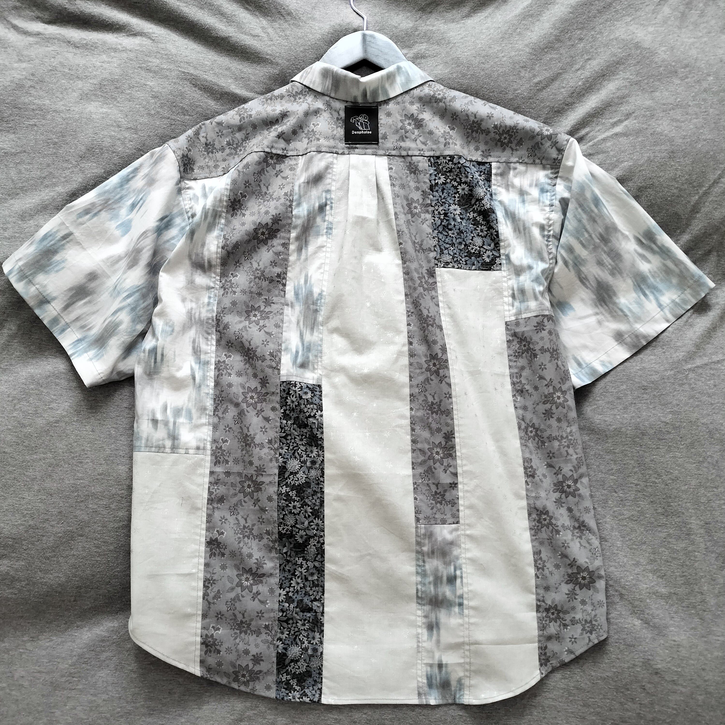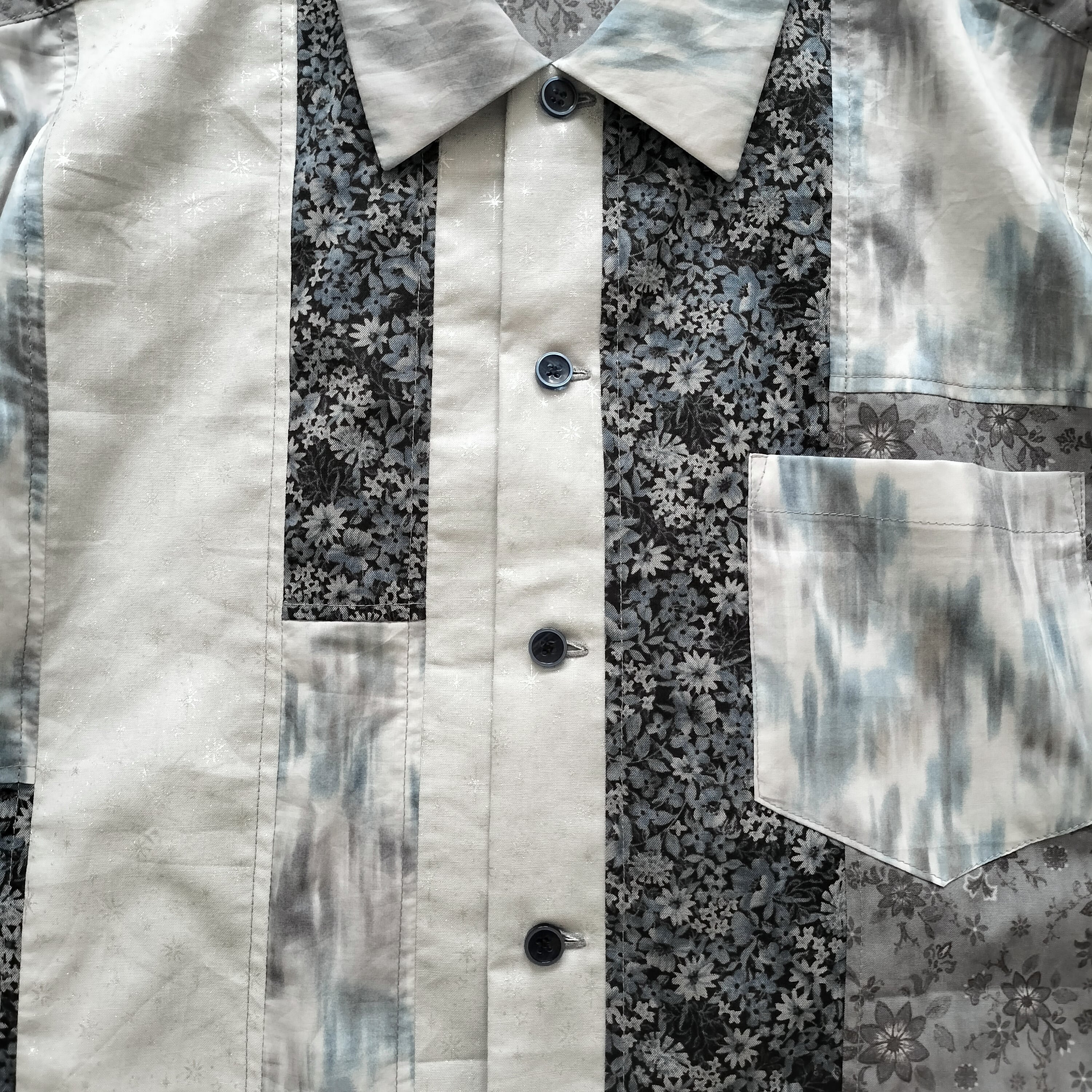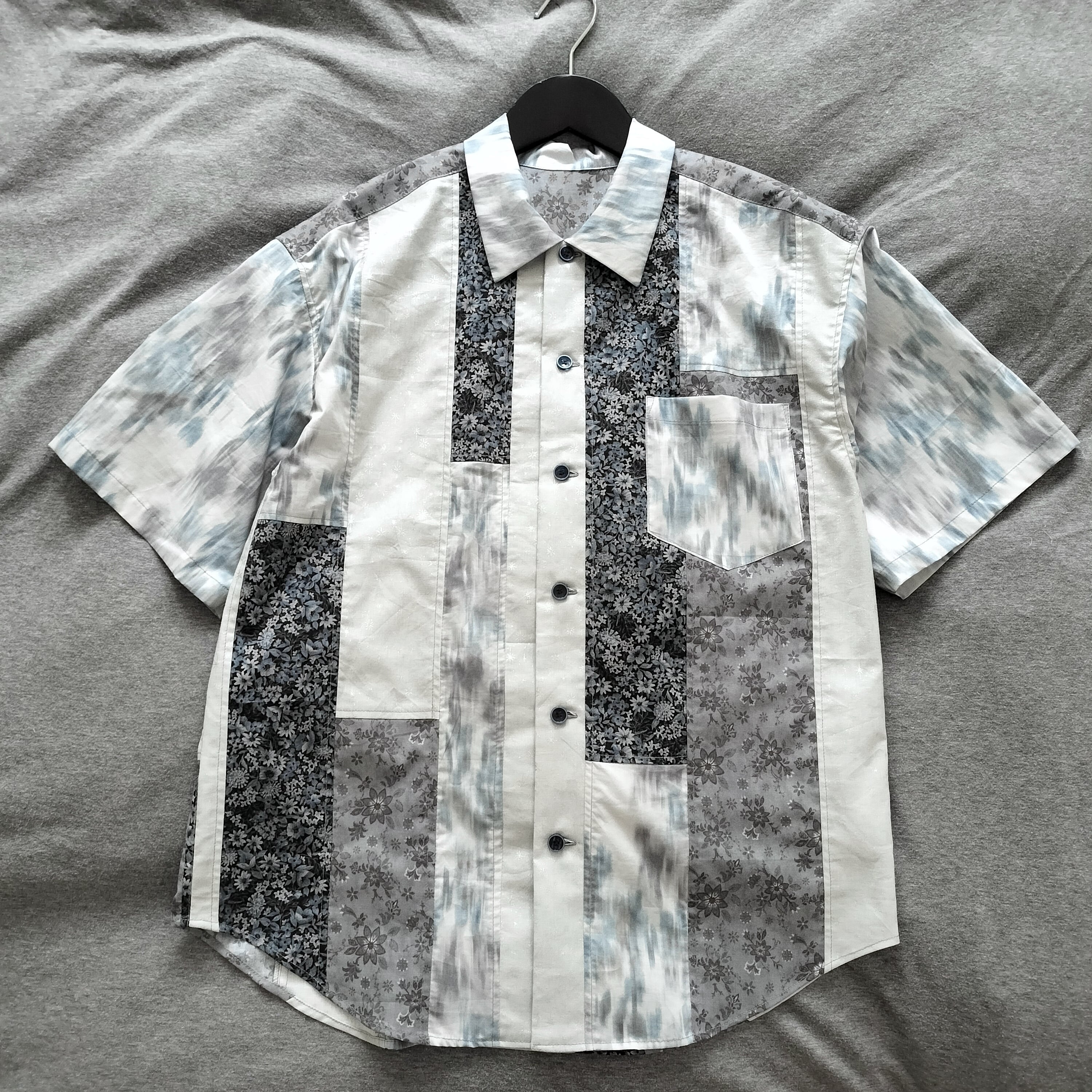 組み合わせ レトロ 小紋柄 花柄 半袖シャツ シャツ 柄シャツ 個性的 おしゃれ 一点物 パッチワーク 男女兼用 コットン 綿 古着風 メンズライク