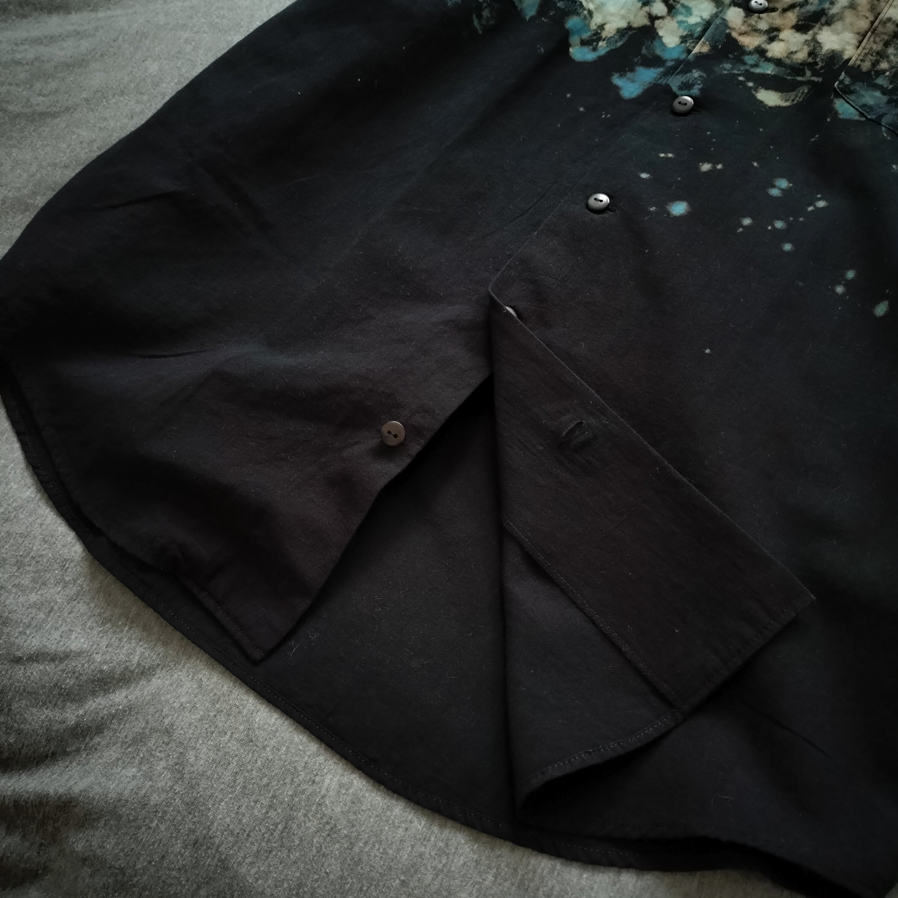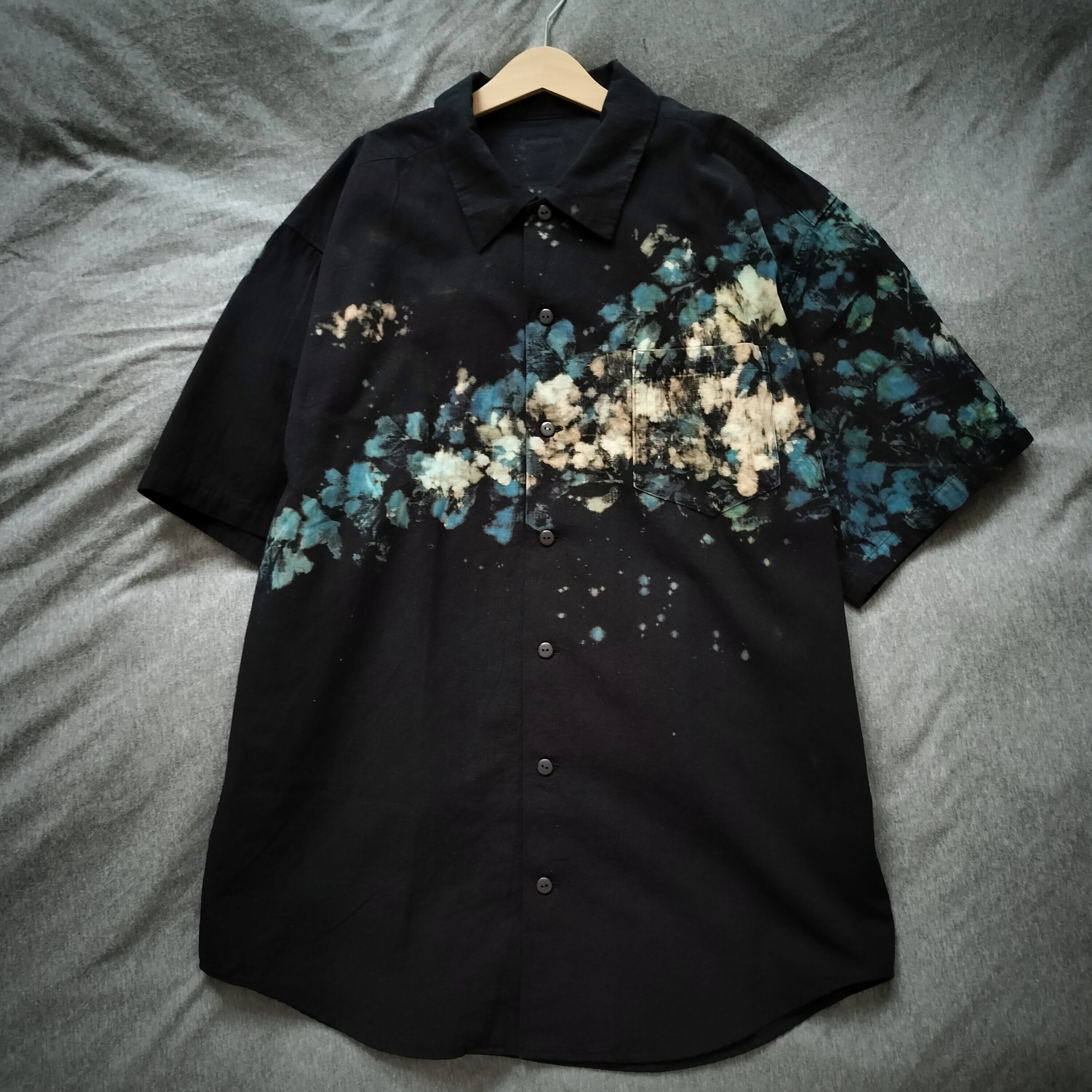 組み合わせ 染色 ブラック 半袖シャツ シャツ 柄シャツ 個性的 おしゃれ 一点物 アロハ 男女兼用 綿 麻 古着風 メンズライク
