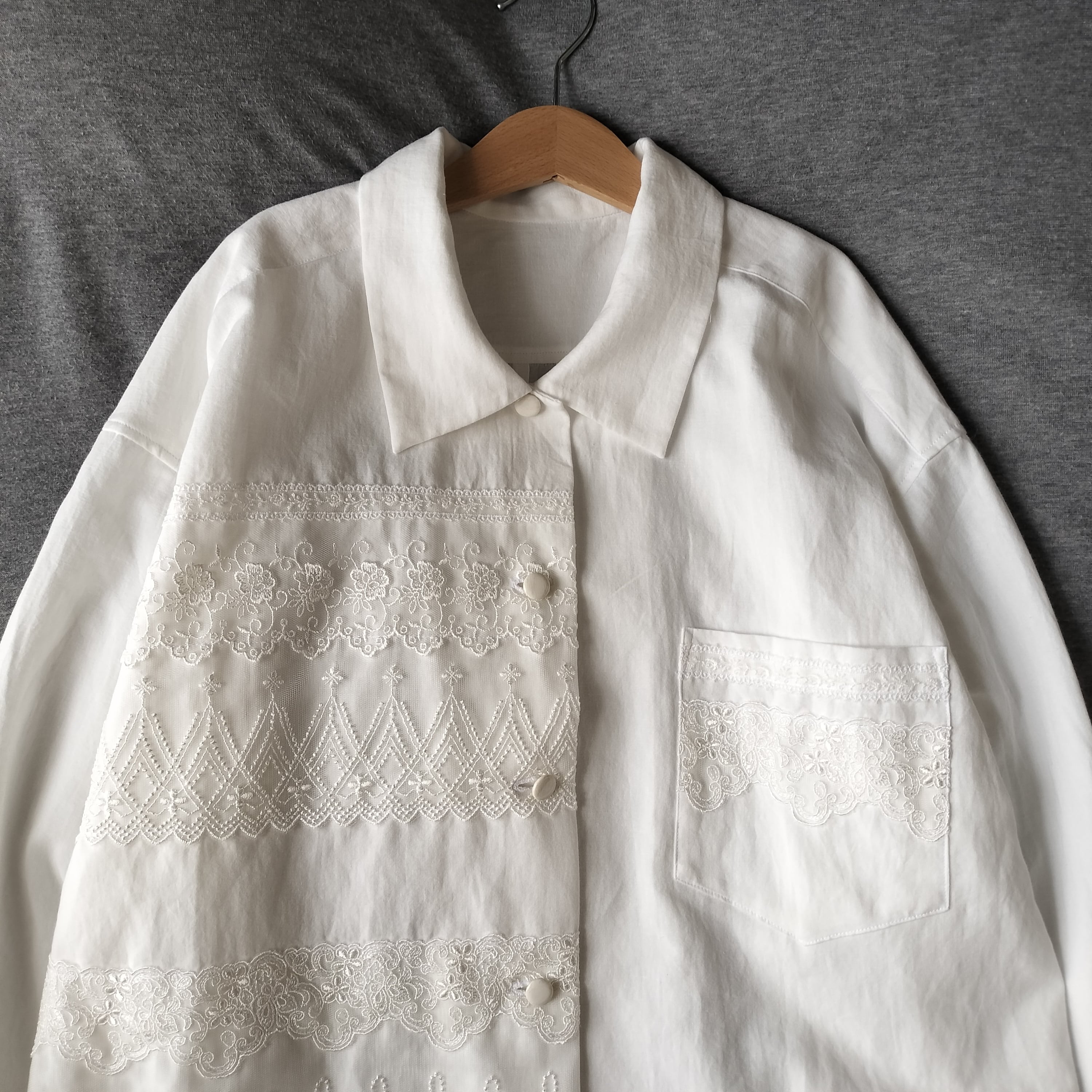 レースシャツ 白シャツ ドレスシャツ 長袖シャツ シャツ 柄シャツ 個性的 おしゃれ 一点物 男女兼用 コットン 綿 古着風 メンズファッション
