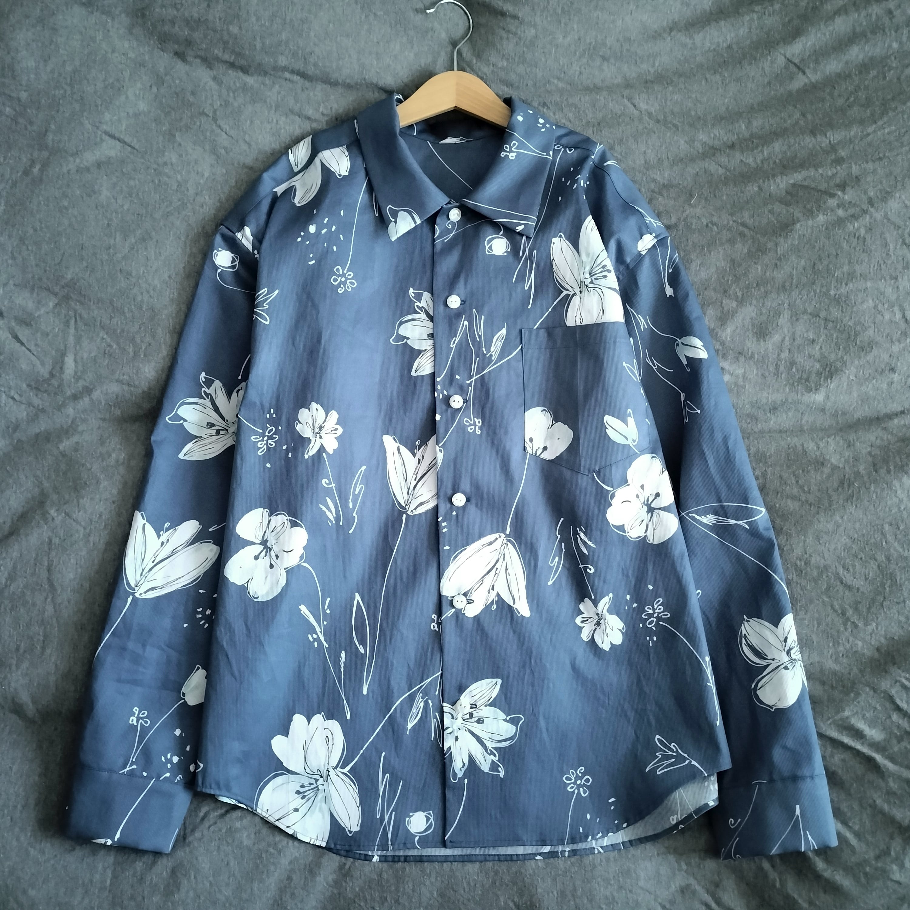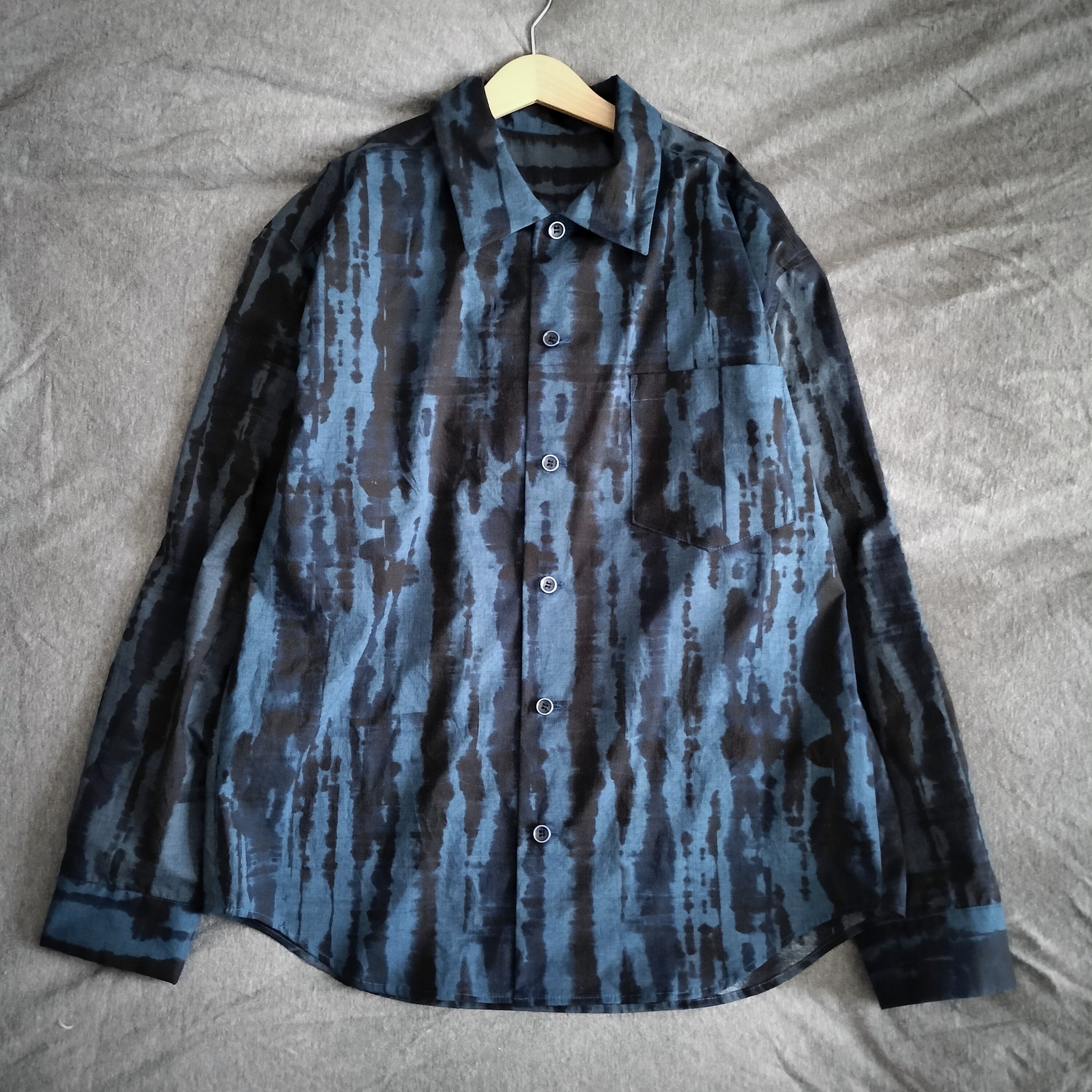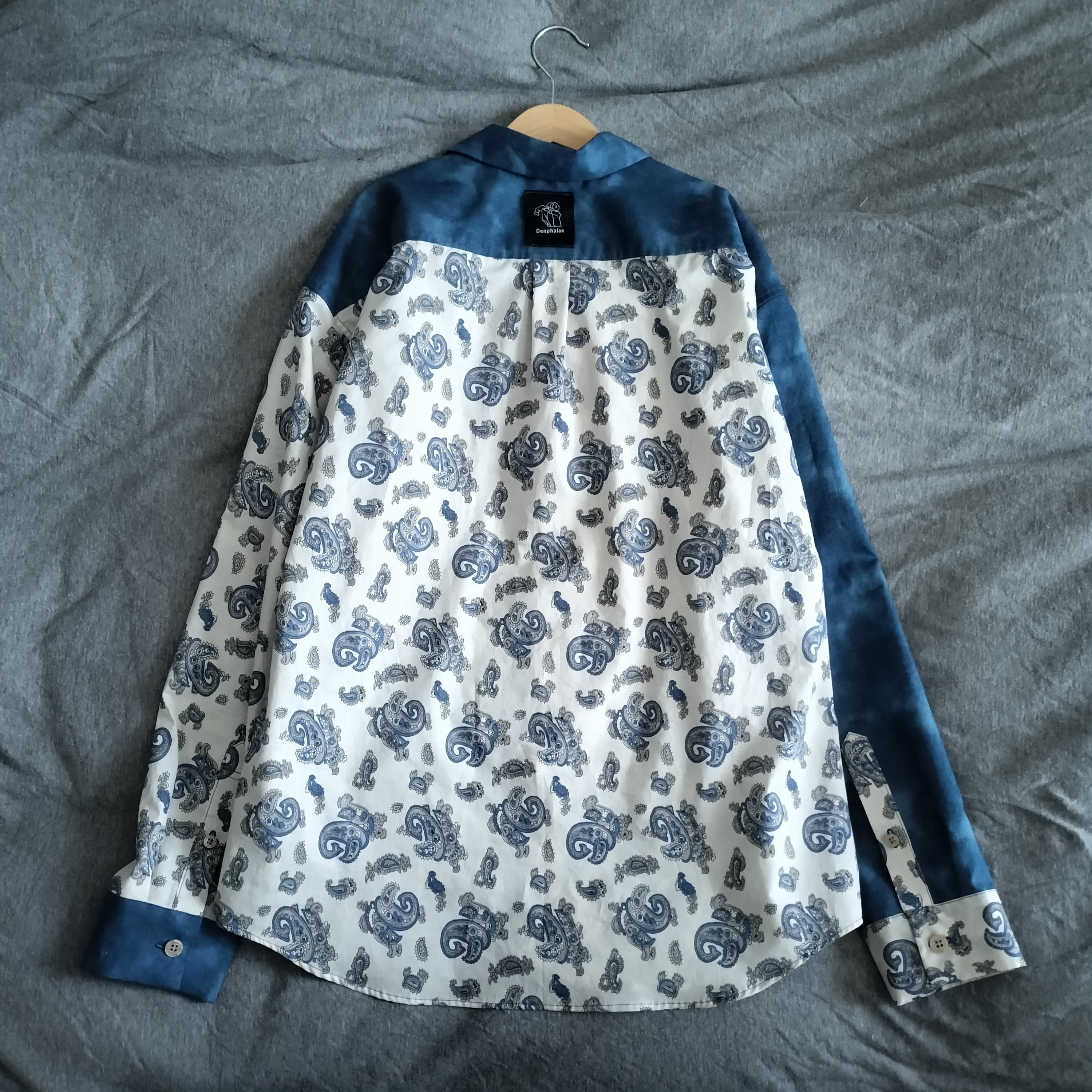 ペイズリー柄 ムラ染め 花柄 長袖シャツ 青 柄シャツ 個性的 おしゃれ 一点物 男女兼用 綿 古着風 メンズファッション レトロ