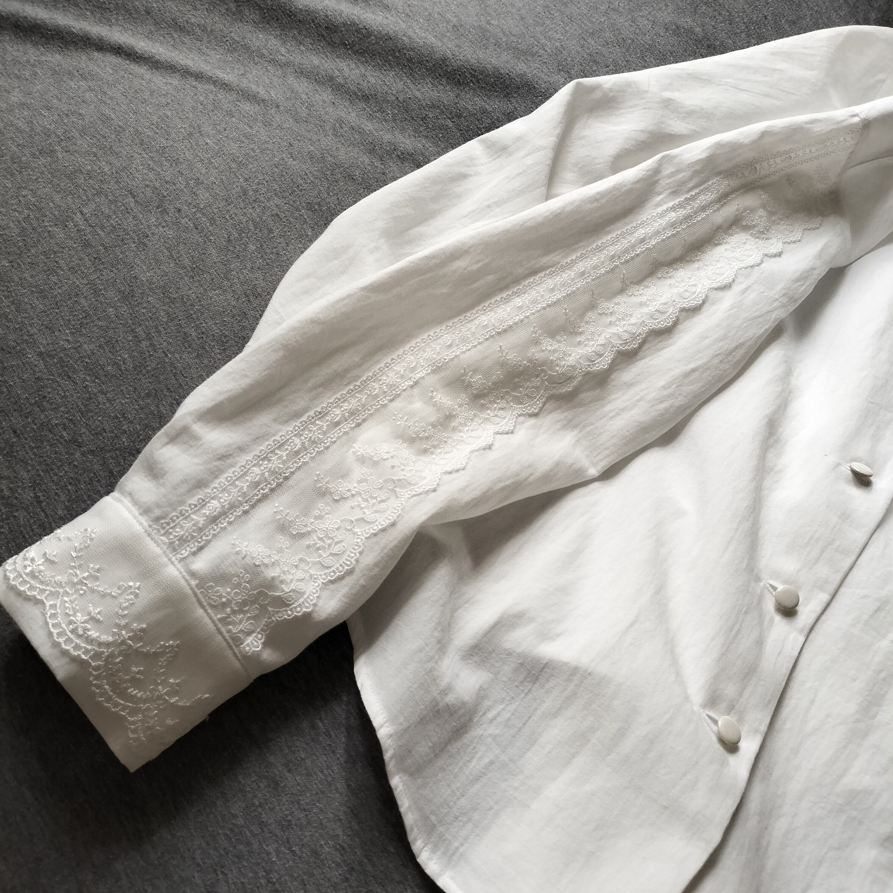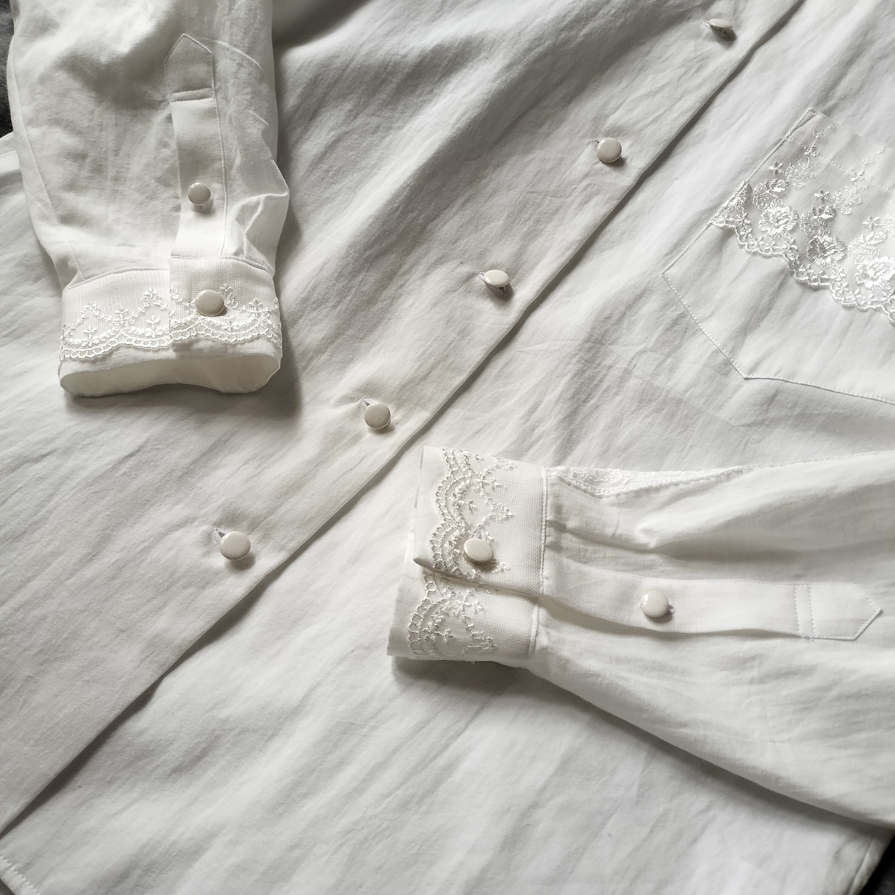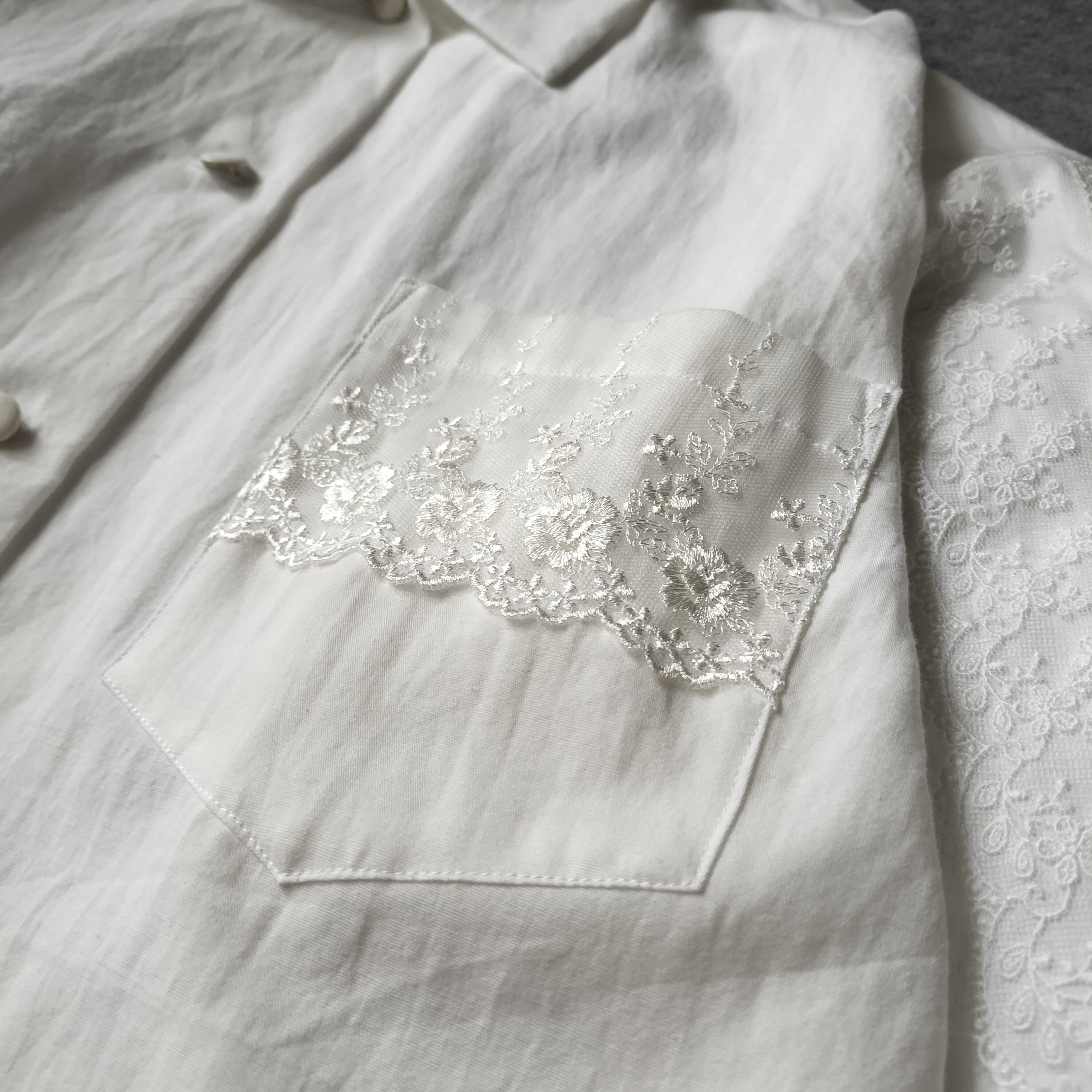 レースシャツ 白シャツ ドレスシャツ 長袖シャツ シャツ 柄シャツ 個性的 おしゃれ 一点物 男女兼用 コットン 綿 古着風 メンズファッション