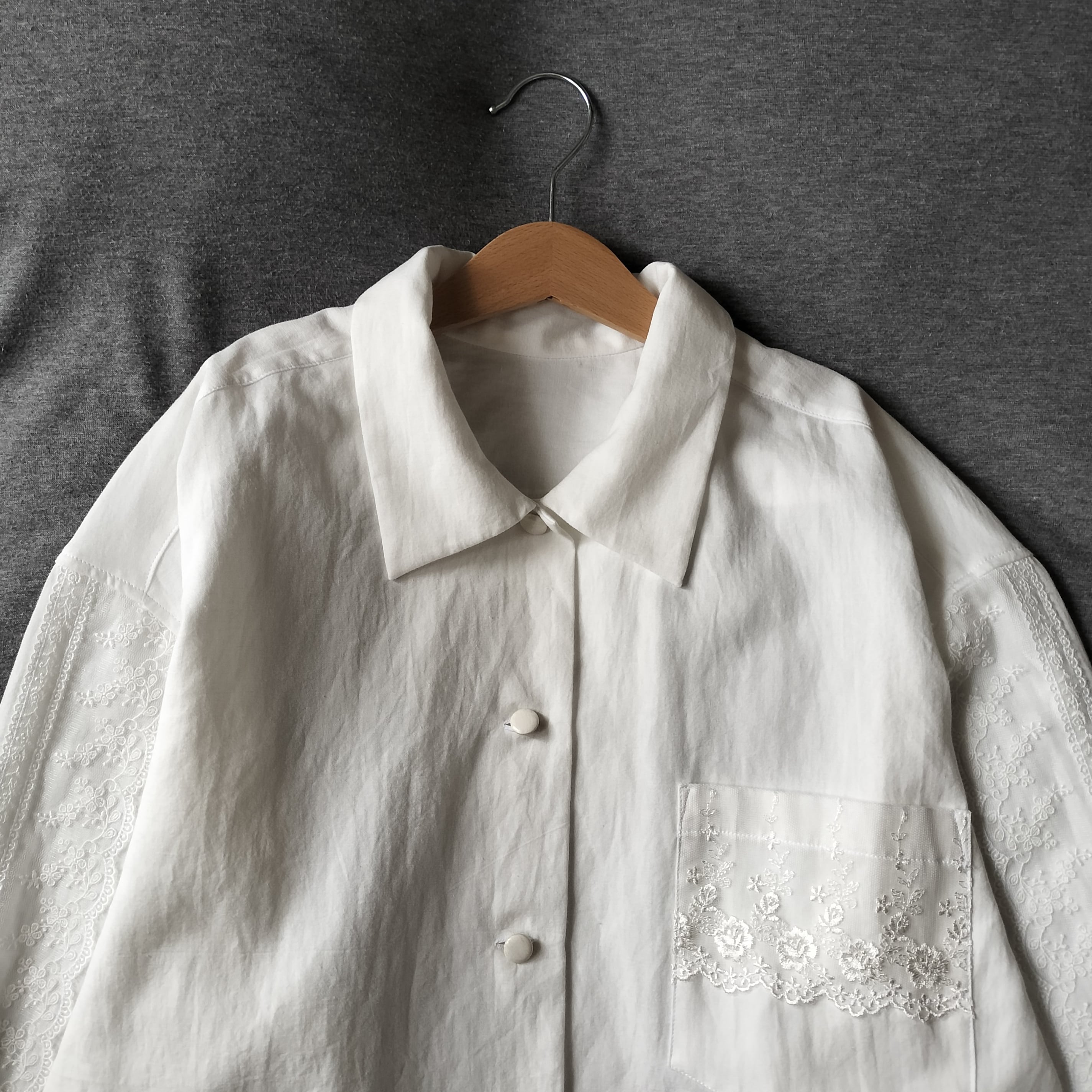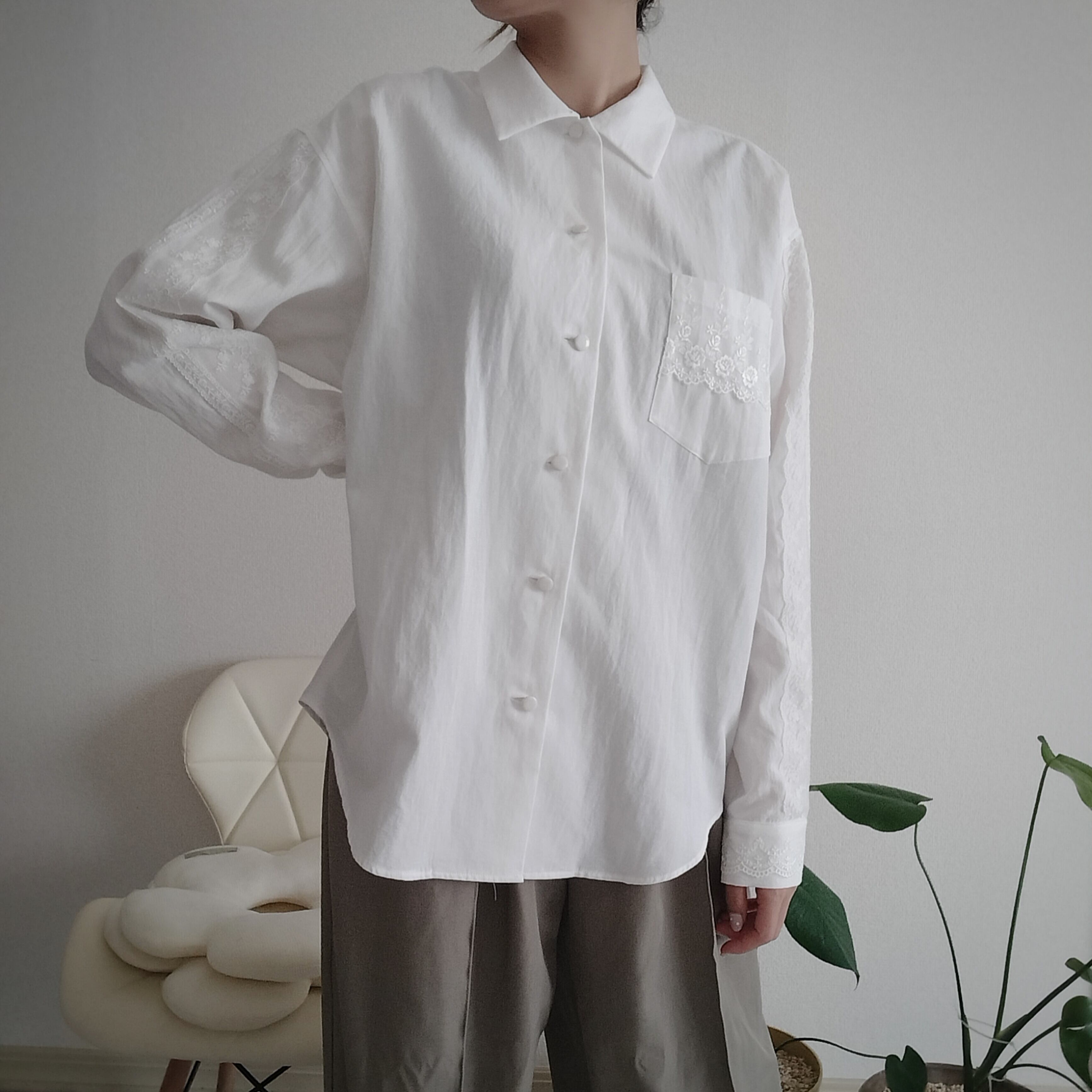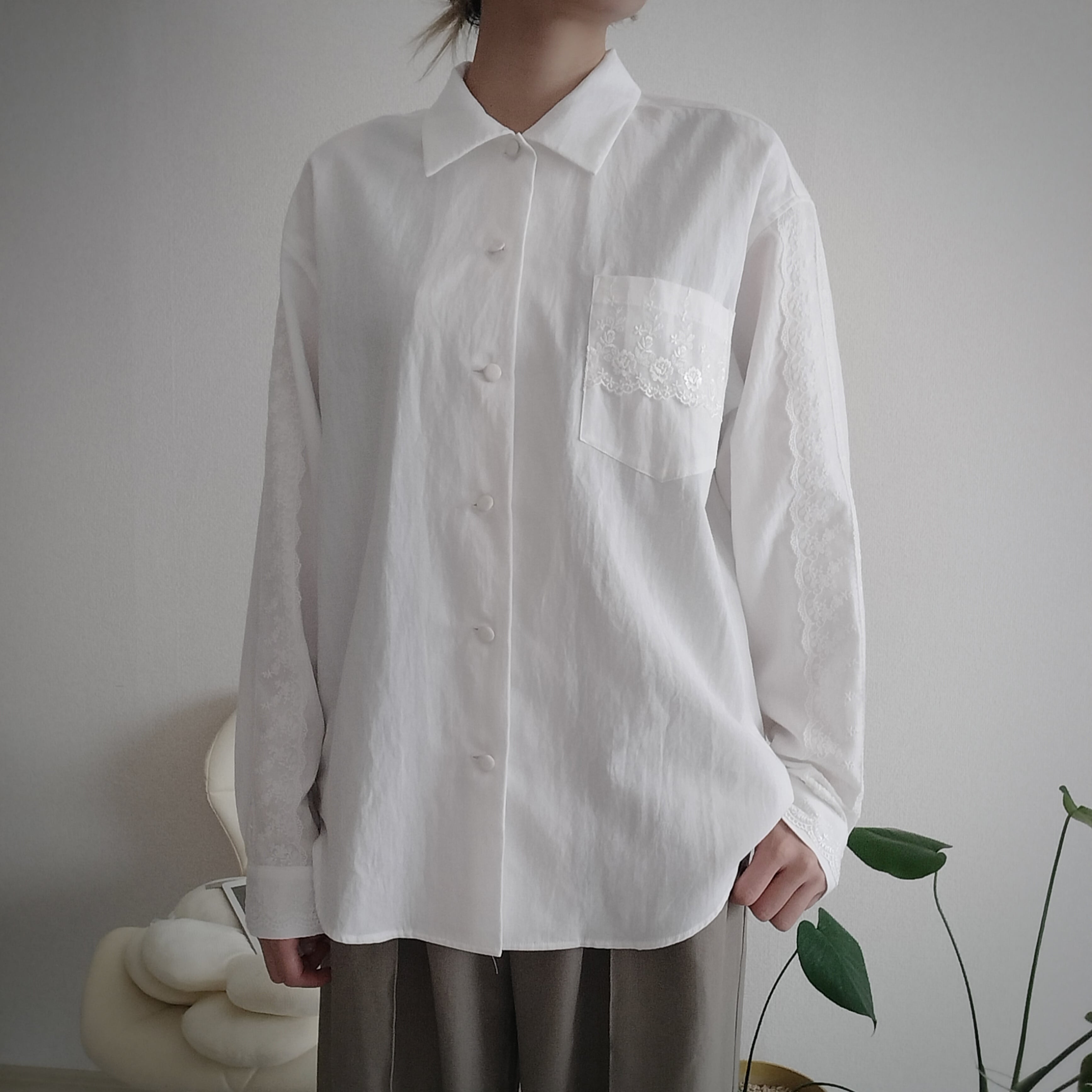 レースシャツ 白シャツ ドレスシャツ 長袖シャツ シャツ 柄シャツ 個性的 おしゃれ 一点物 男女兼用 コットン 綿 古着風 メンズファッション