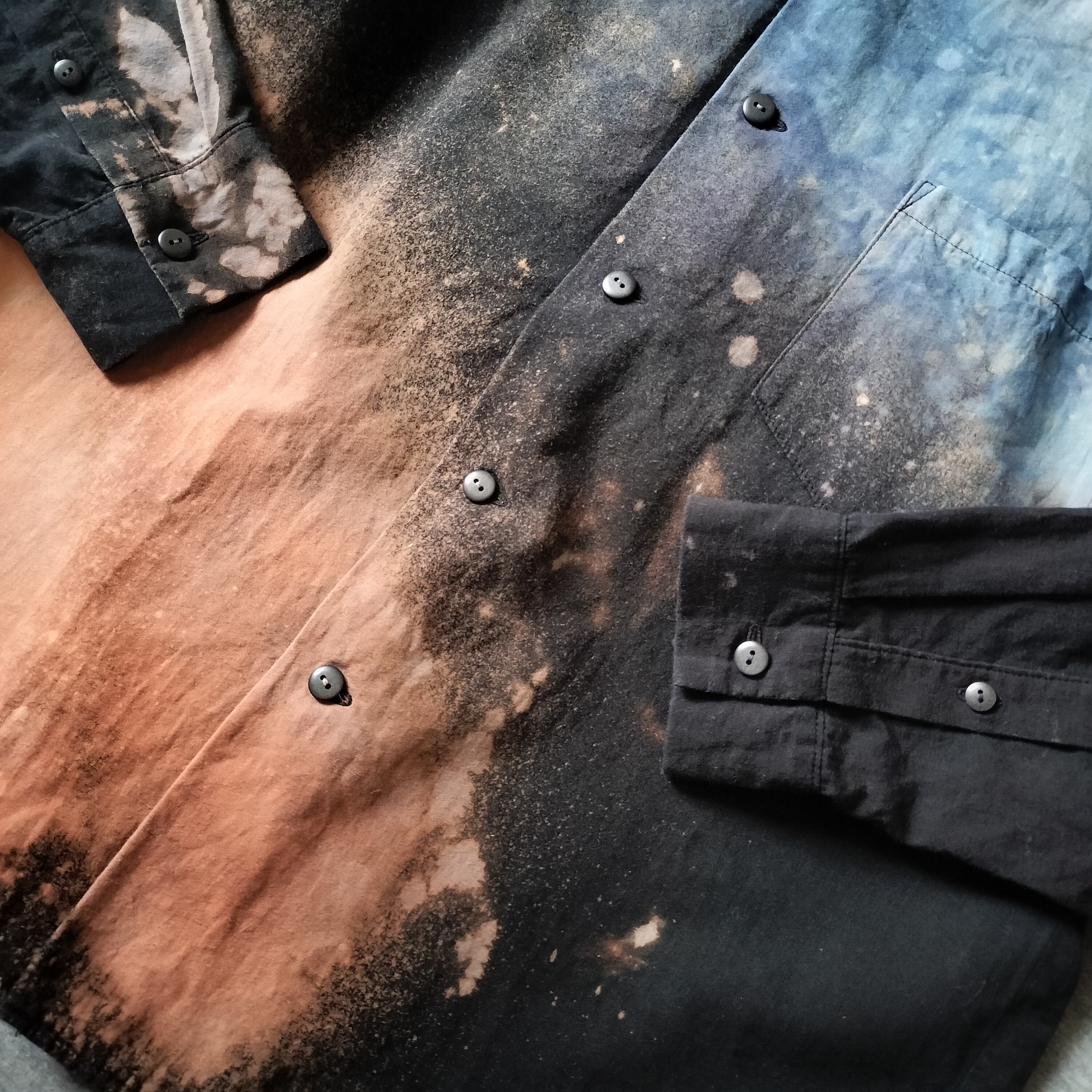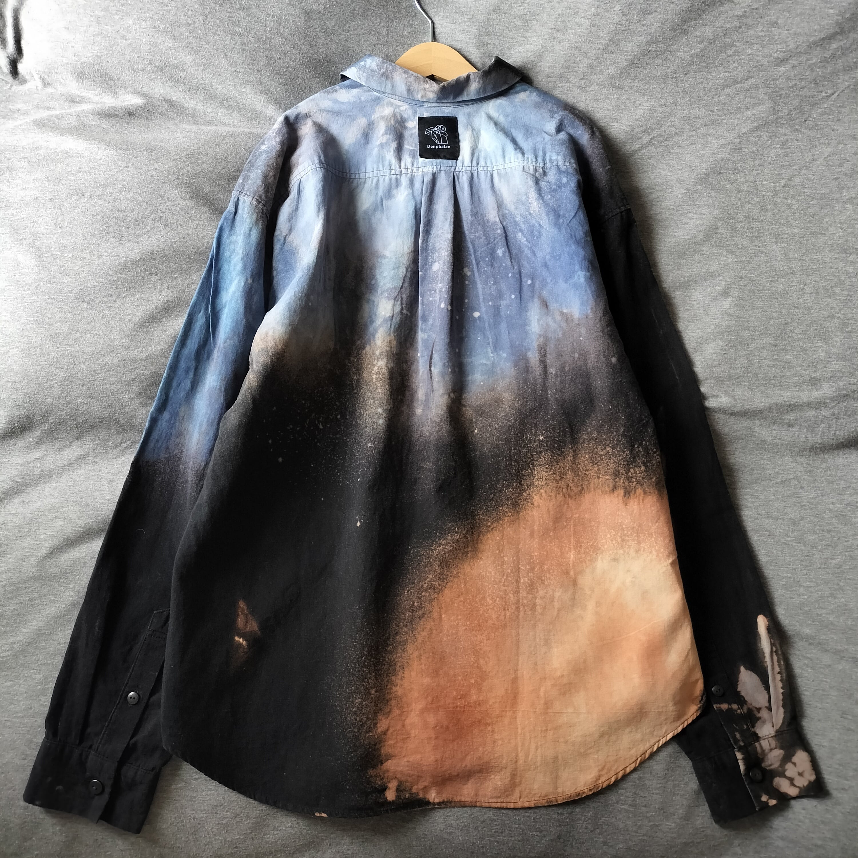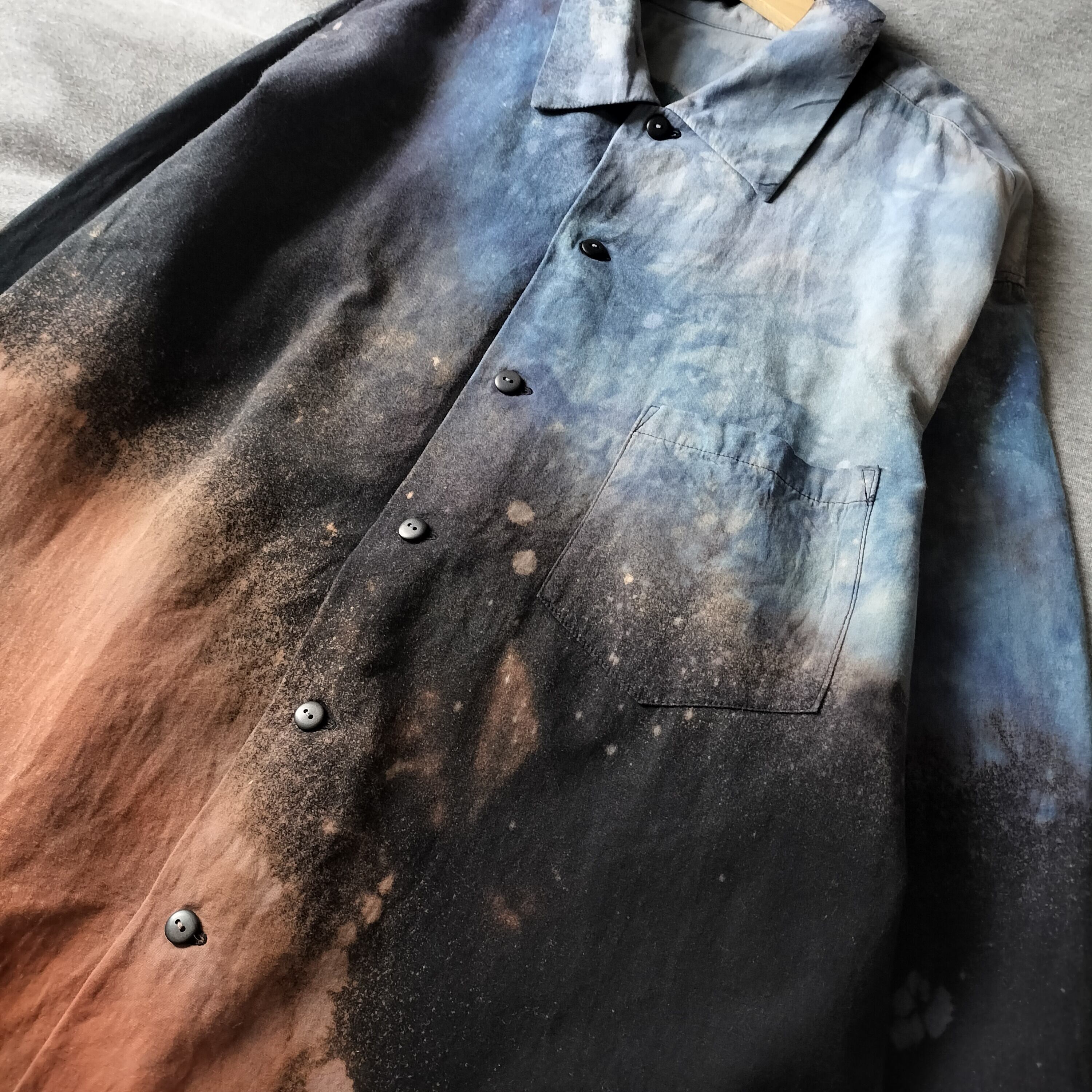 花柄 シック 長袖シャツ シャツ 柄シャツ 個性的 おしゃれ 一点物 男女兼用 綿 麻 古着風 メンズファッション レトロ 染色