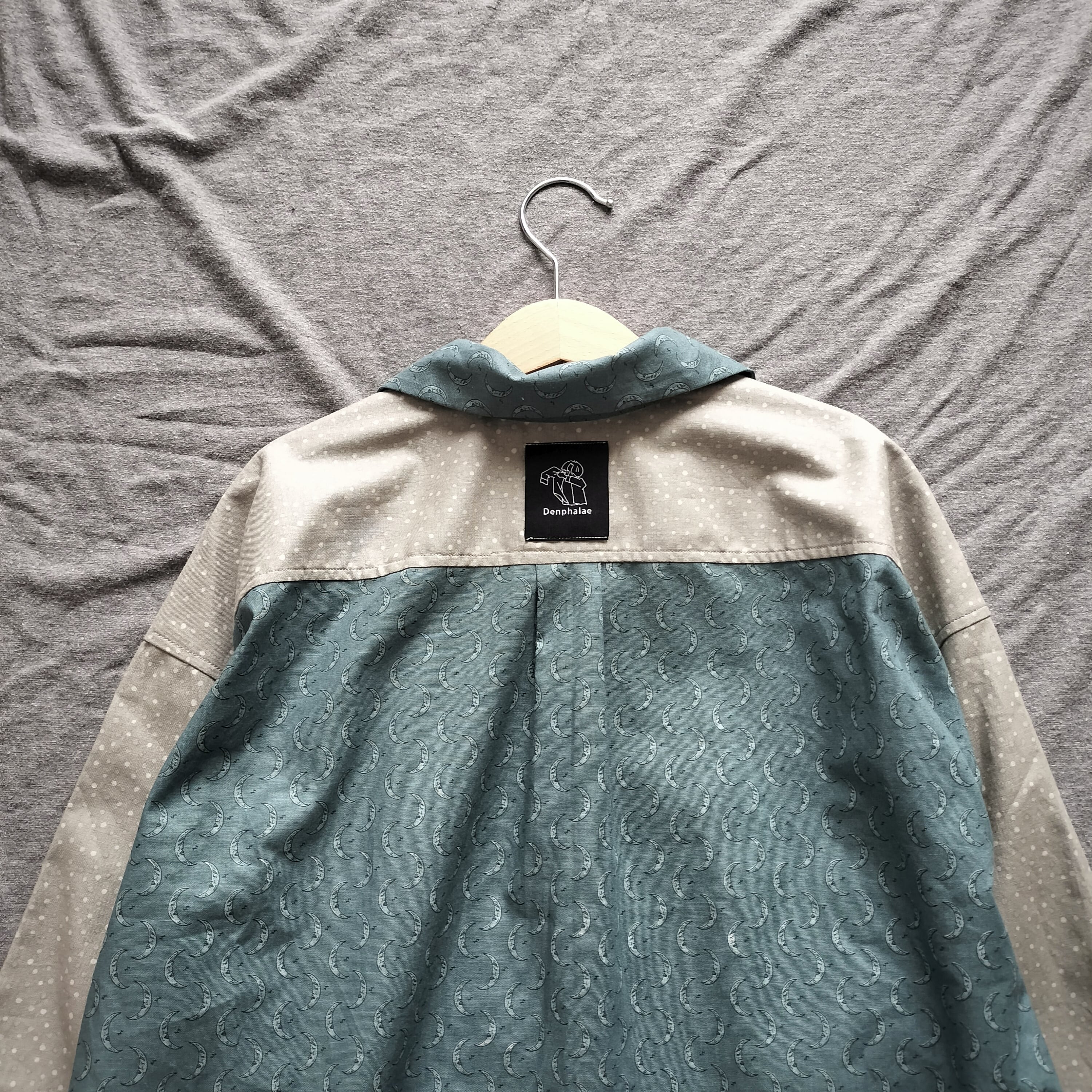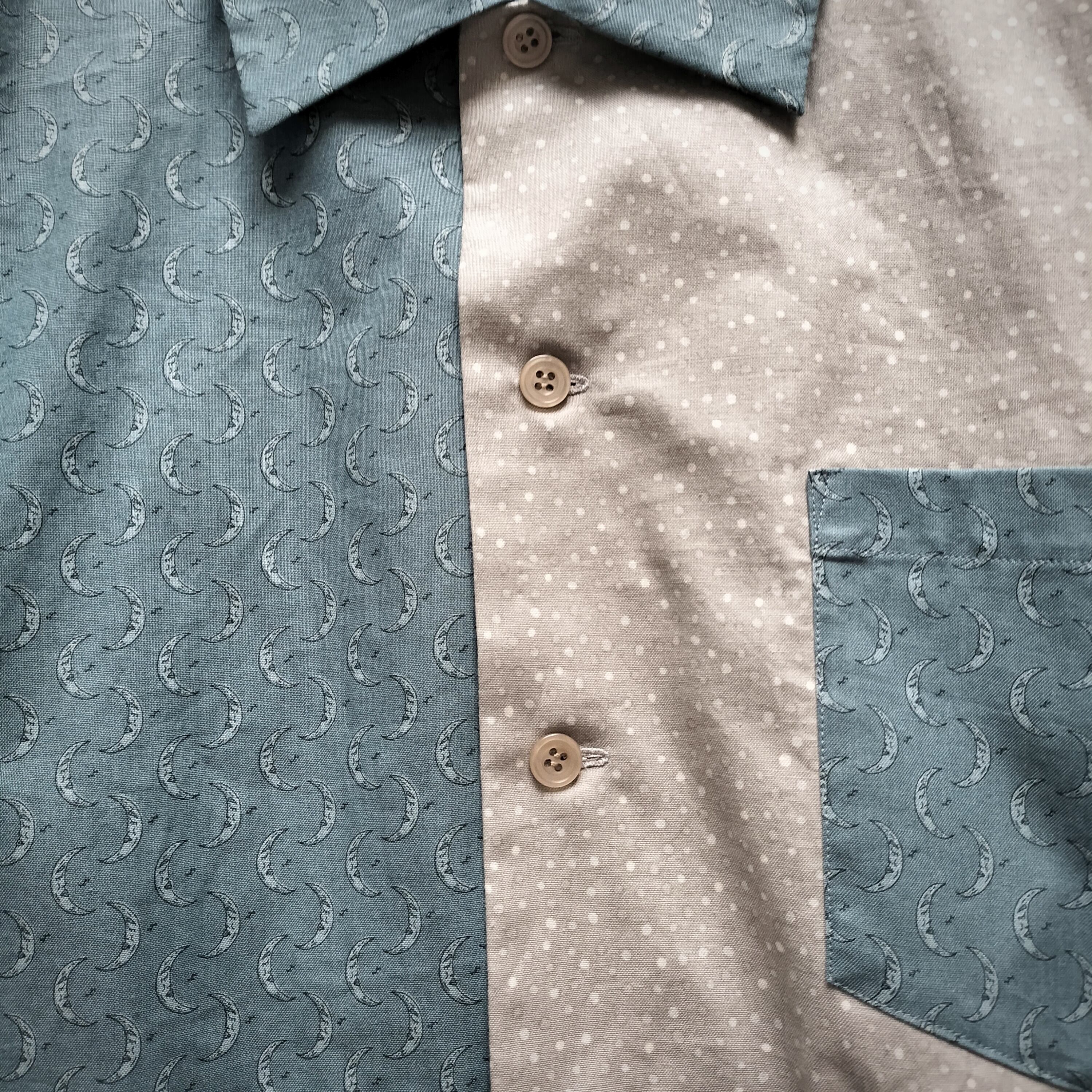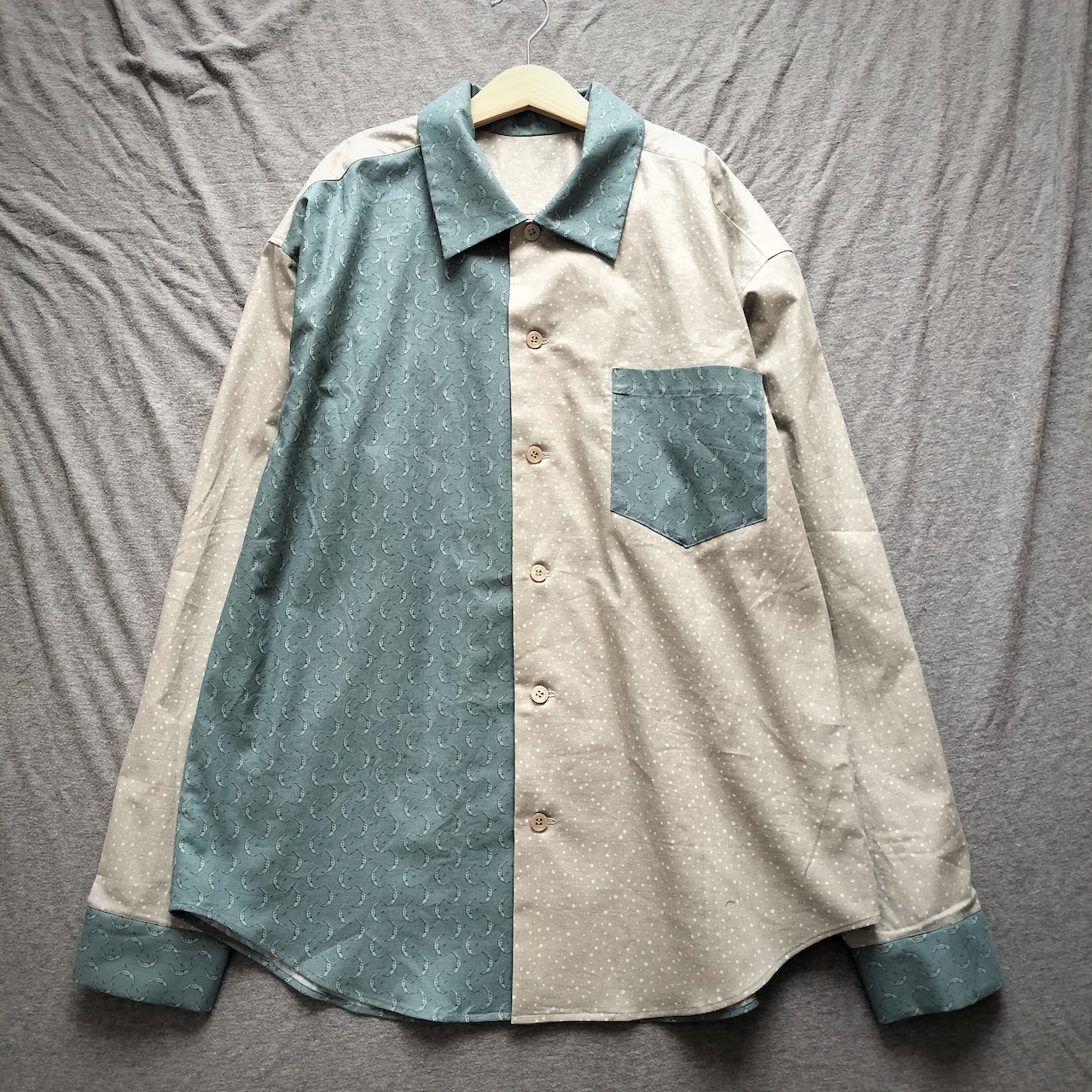 お月さま ドット 中性的 長袖シャツ シャツ 柄シャツ 個性的 おしゃれ 一点物 男女兼用 綿 古着風 メンズファッション