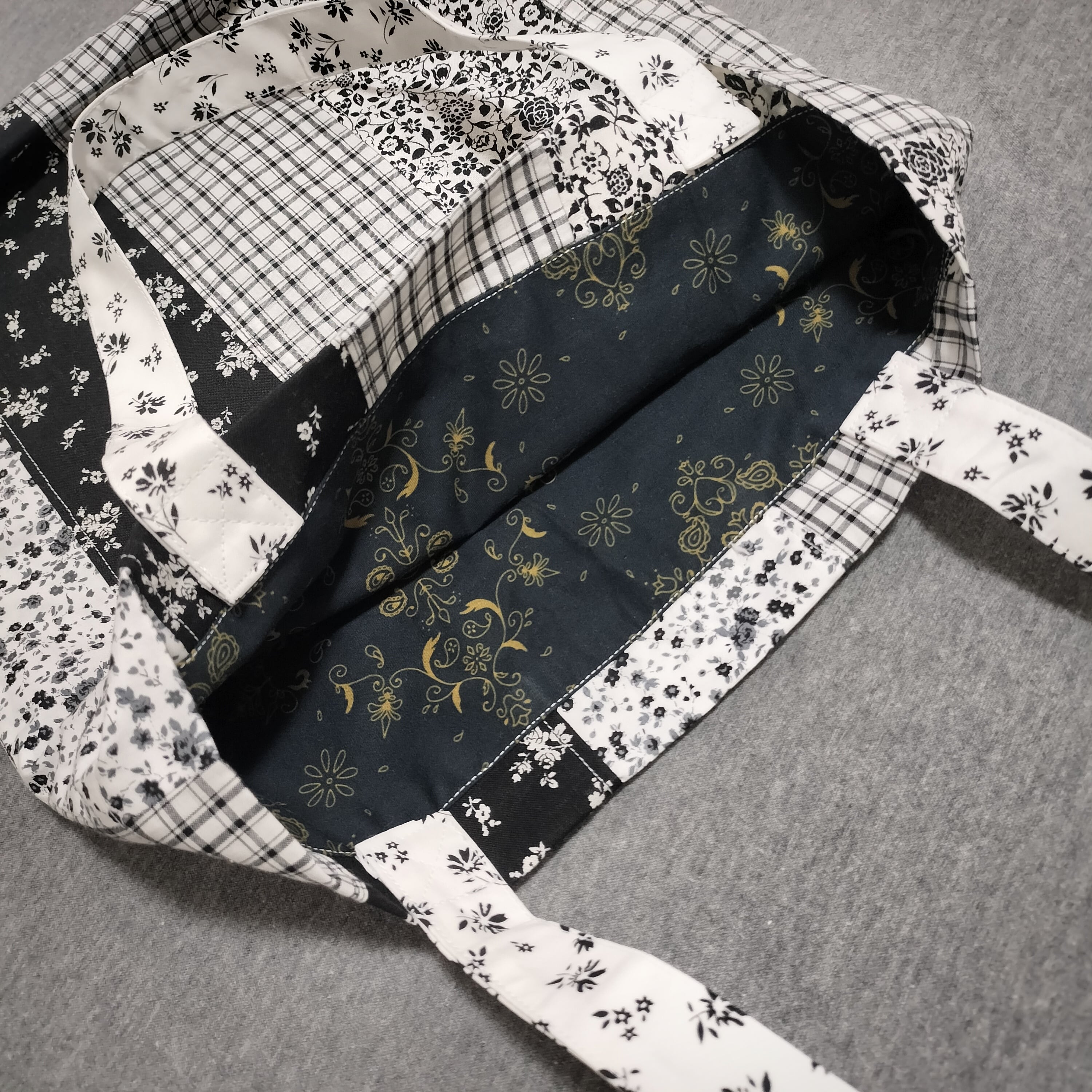 花柄 チェック モノトーン トートバッグ パッチワーク 個性的 おしゃれ 一点物 男女兼用 綿 古着風 レトロ