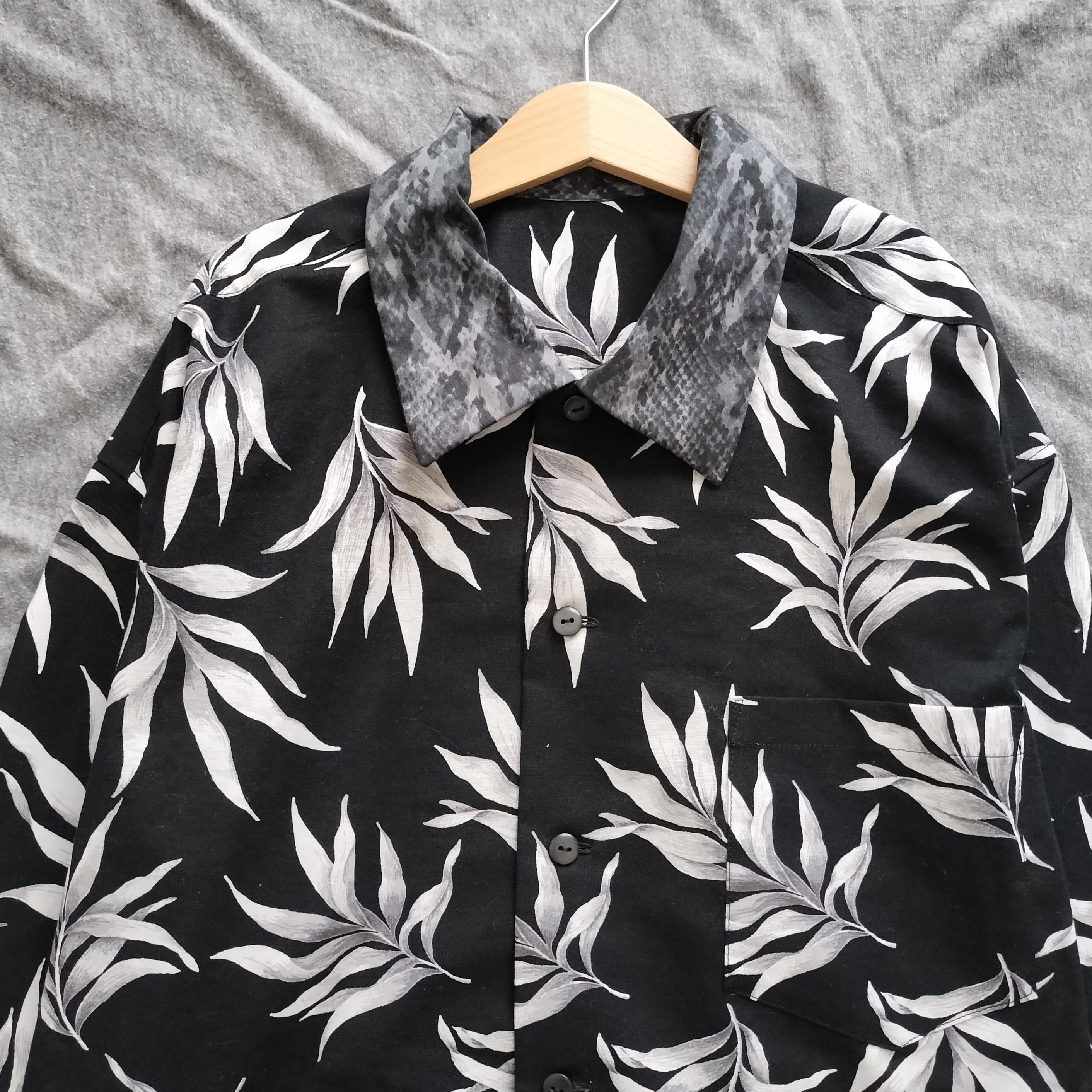 花柄 ムラ染め 長袖シャツ 黒 柄シャツ 個性的 おしゃれ 一点物 男女兼用 綿 古着風 メンズファッション レトロ