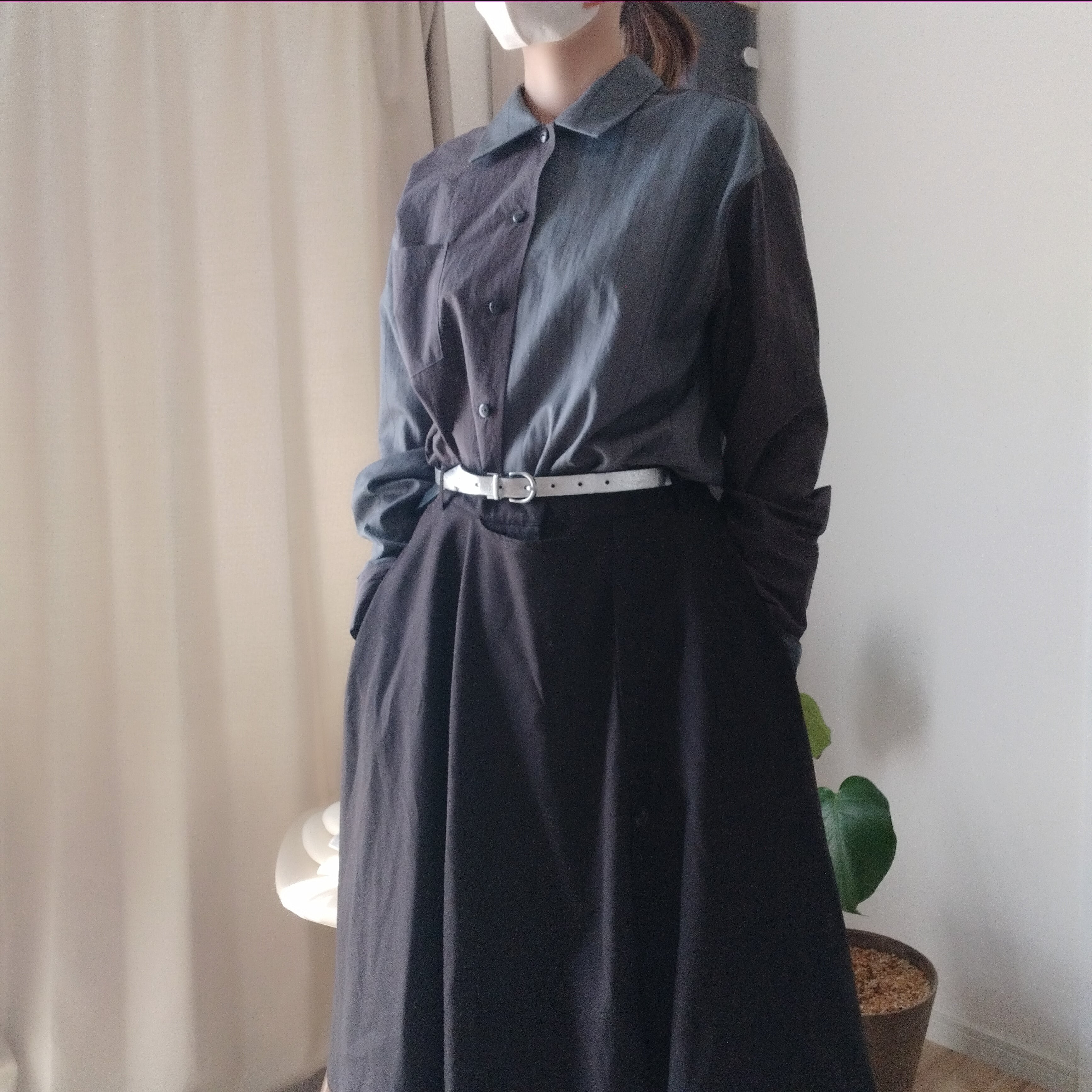 暗めのグレーとチャコールの生地を組み合わせ、