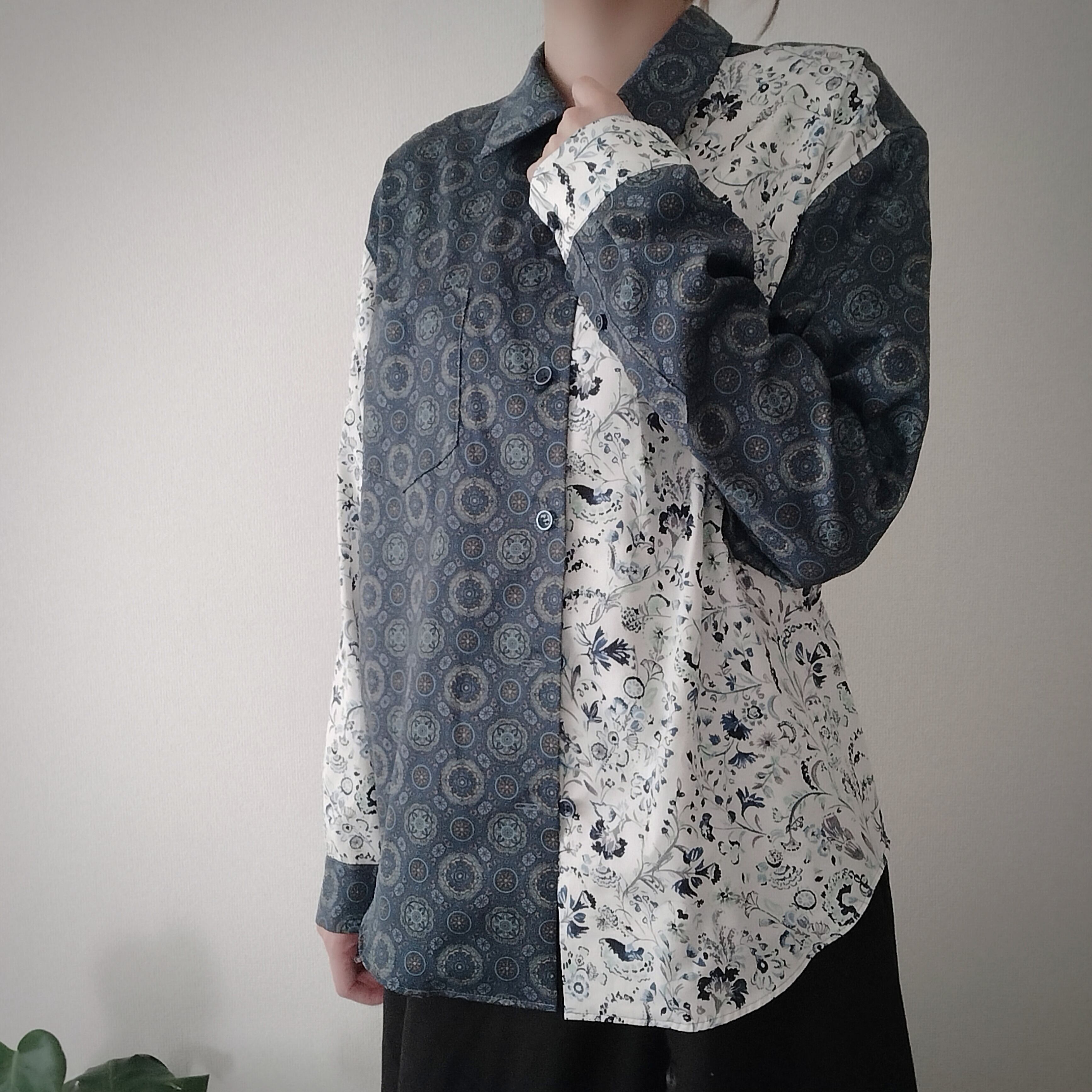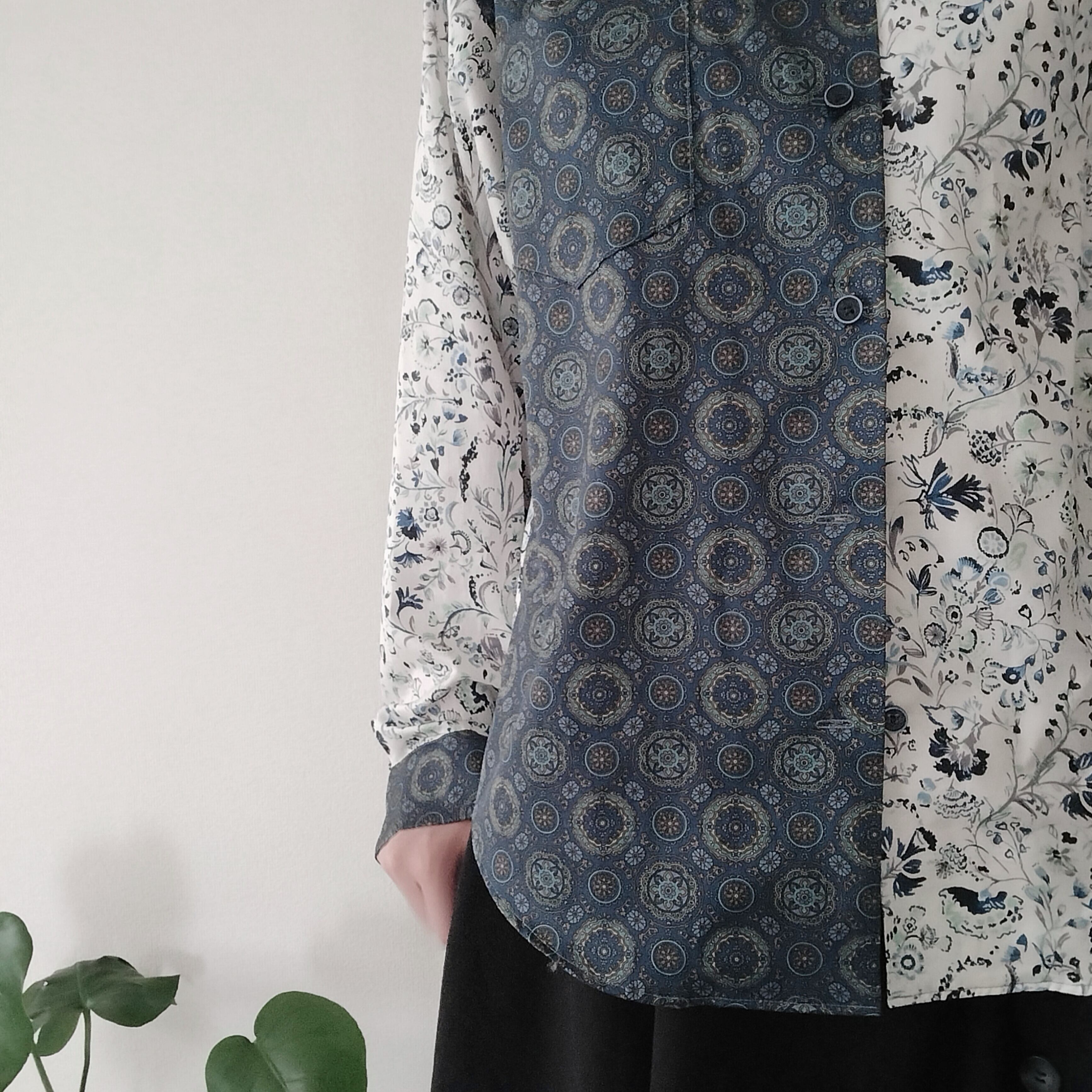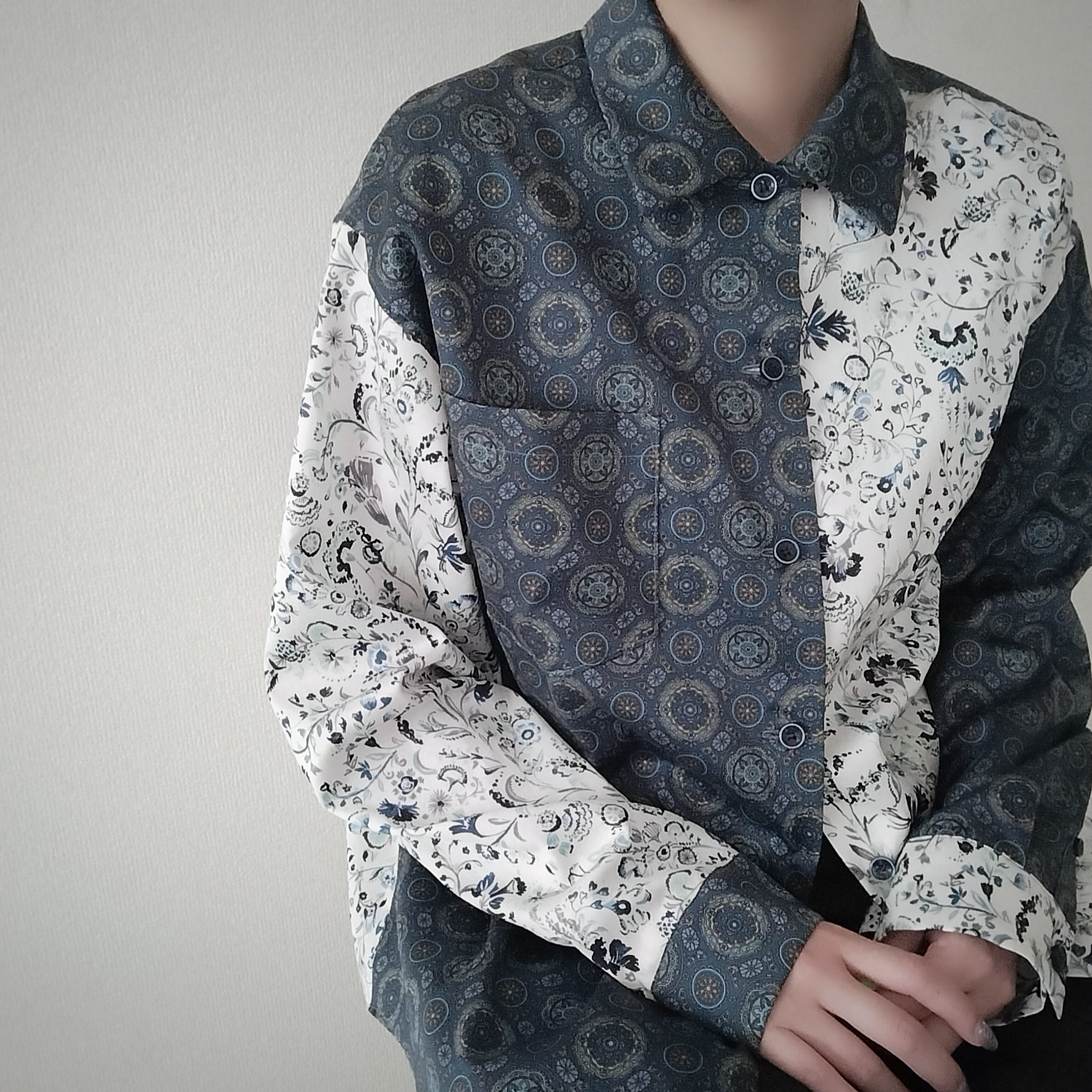 パッチワーク チェック クラシック モロッカン 長袖シャツ 柄シャツ 個性的 おしゃれ 一点物 男女兼用