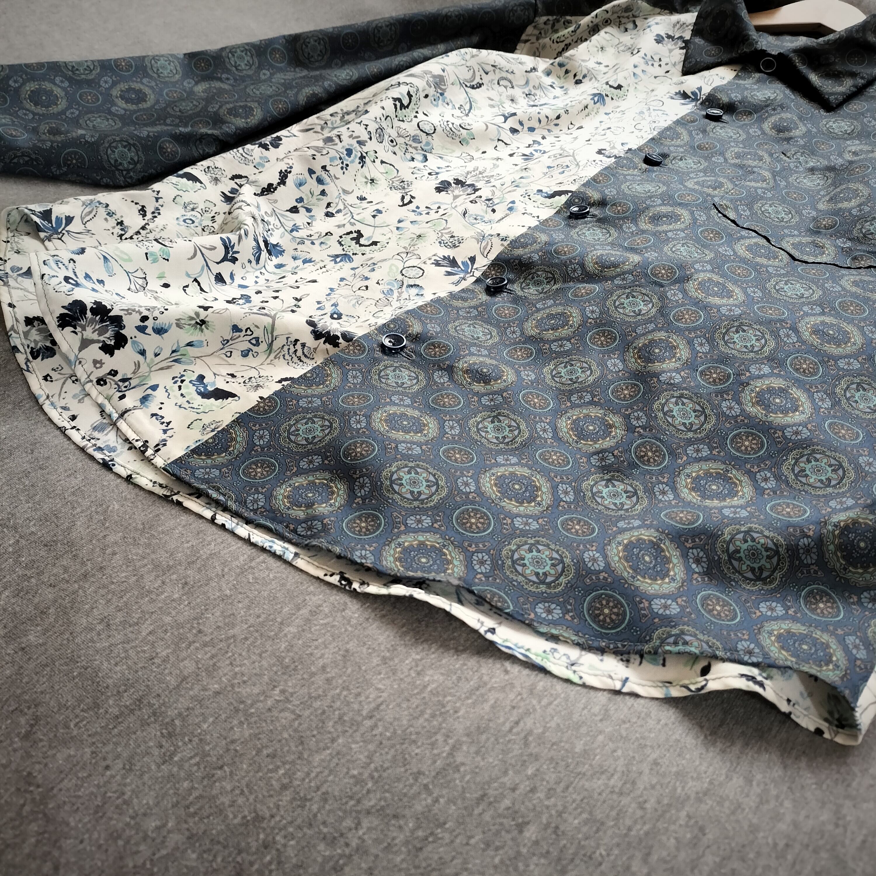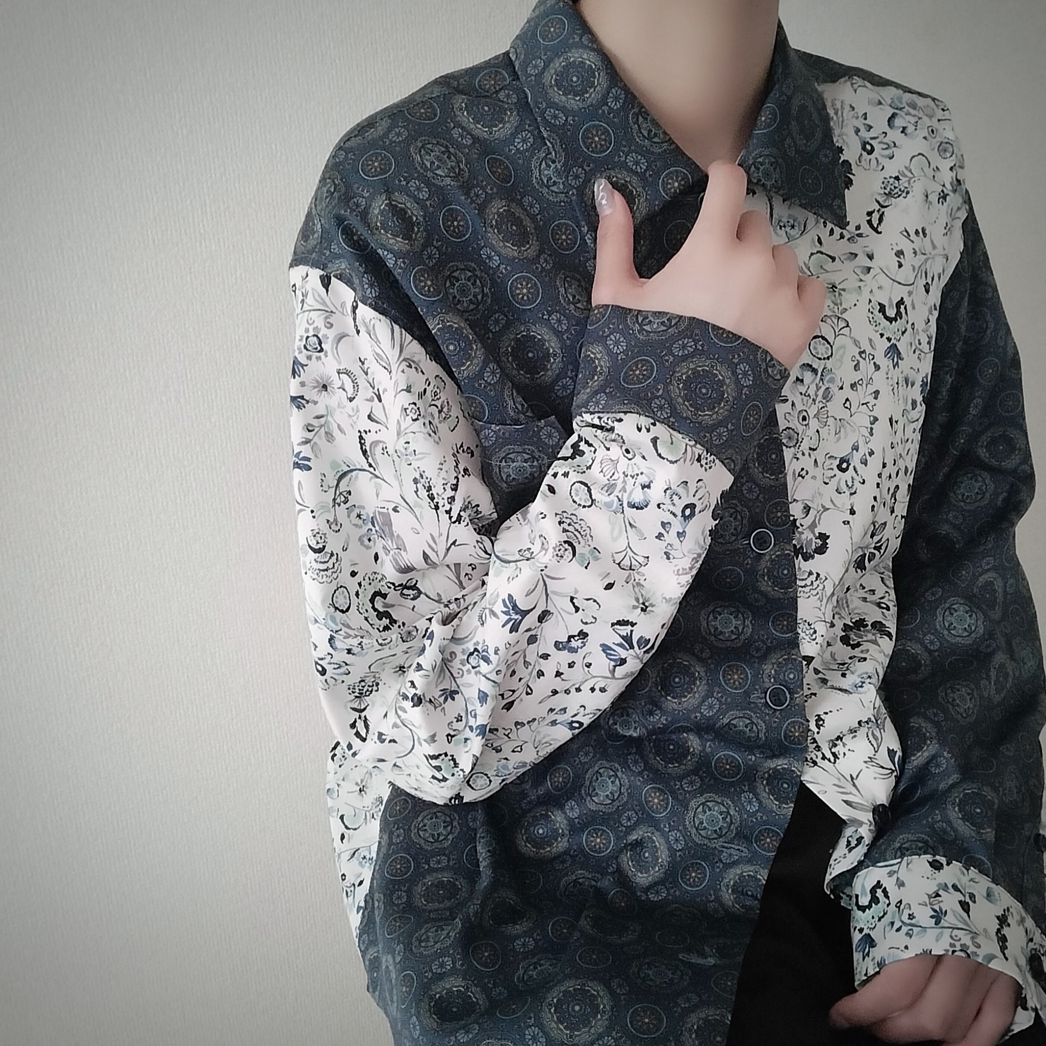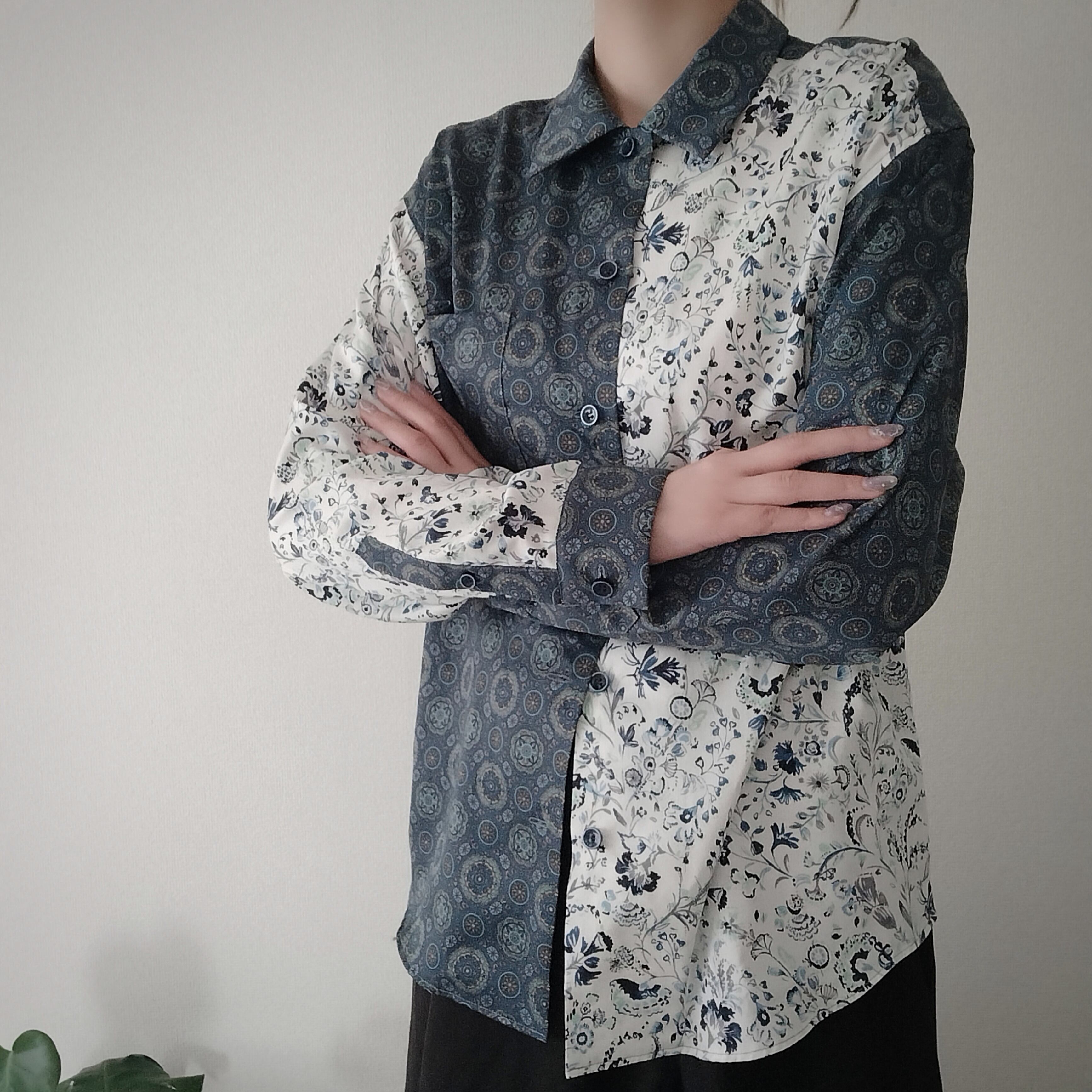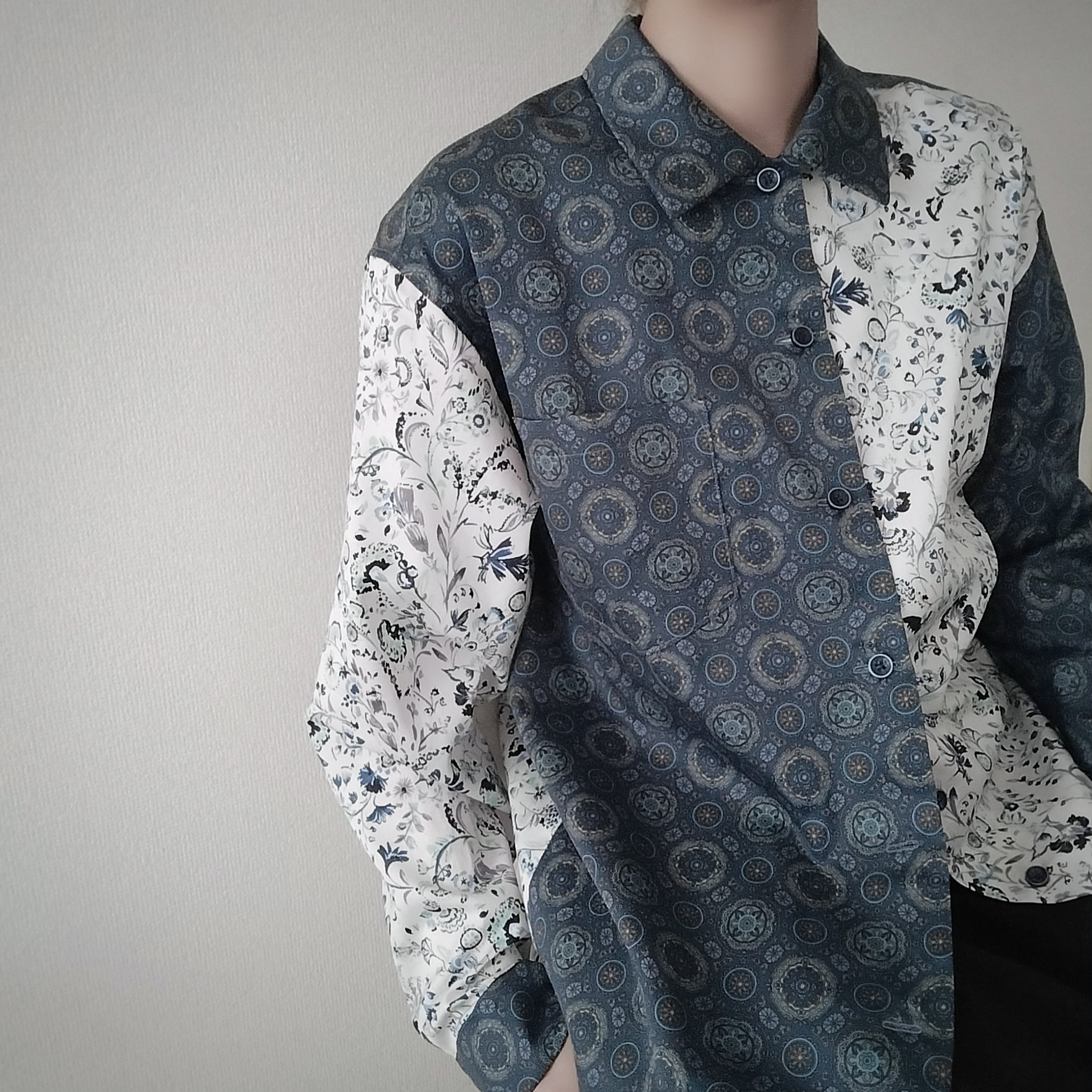 パッチワーク チェック クラシック モロッカン 長袖シャツ 柄シャツ 個性的 おしゃれ 一点物 男女兼用