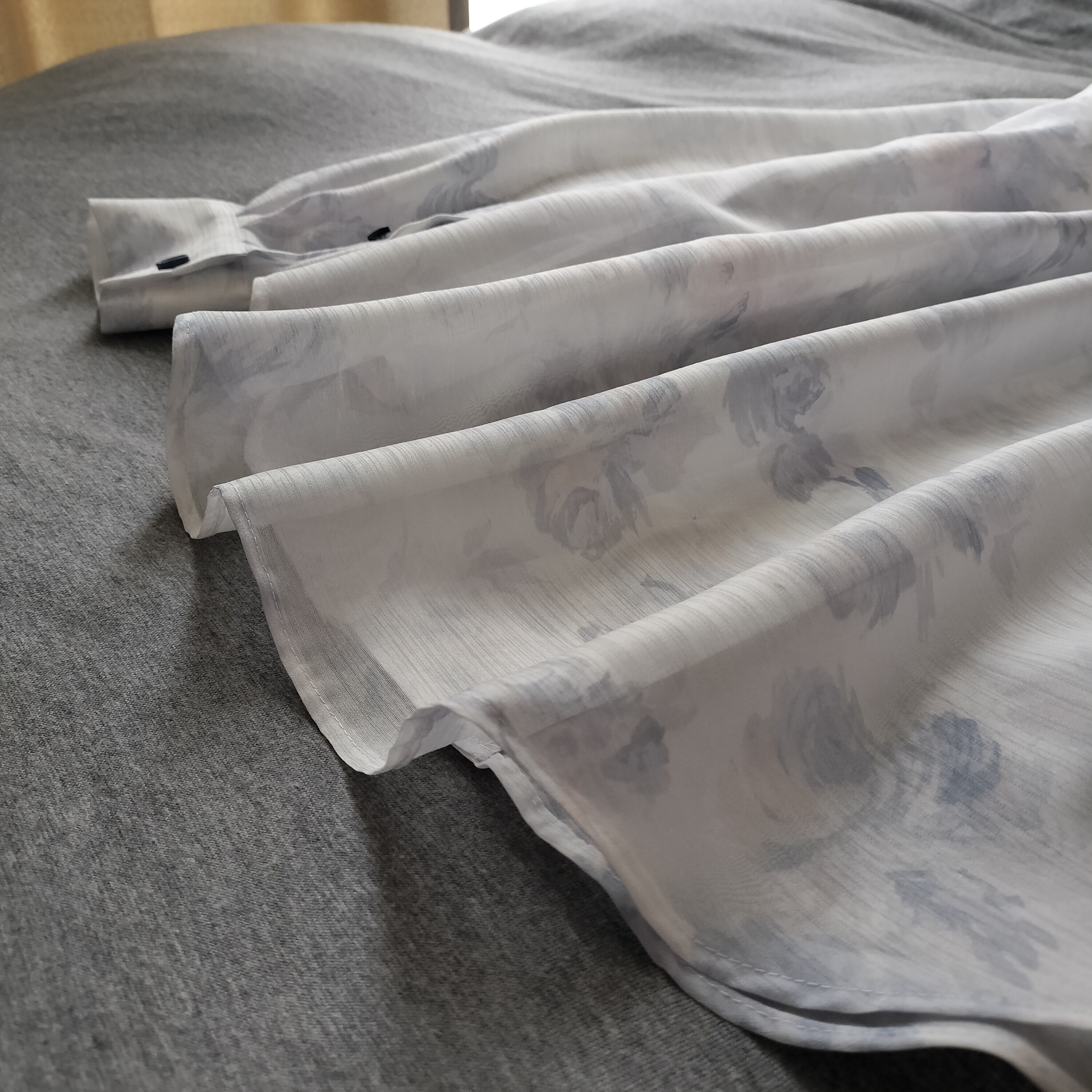 透け素材 白シャツ 花柄 シアーシャツ 長袖シャツ シャツ 柄シャツ 個性的 おしゃれ 一点物 男女兼用 ポリエステル 古着風 メンズファッション