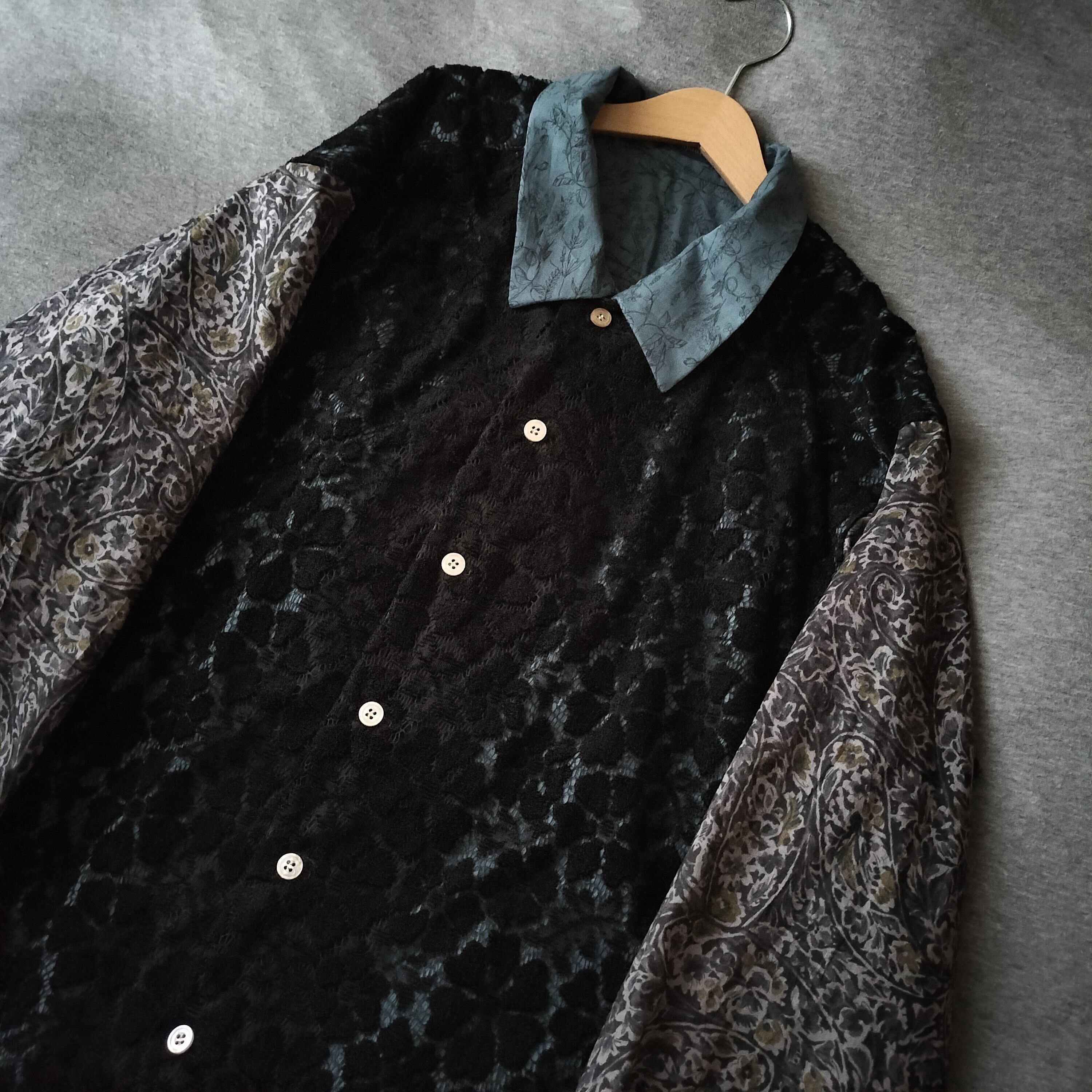 組み合わせ 花柄 ペイズリー 長袖シャツ シャツ 柄シャツ 個性的 おしゃれ 一点物 パッチワーク 男女兼用 コットン 綿 ポリエステル 古着風 メンズファッション デザインシャツ