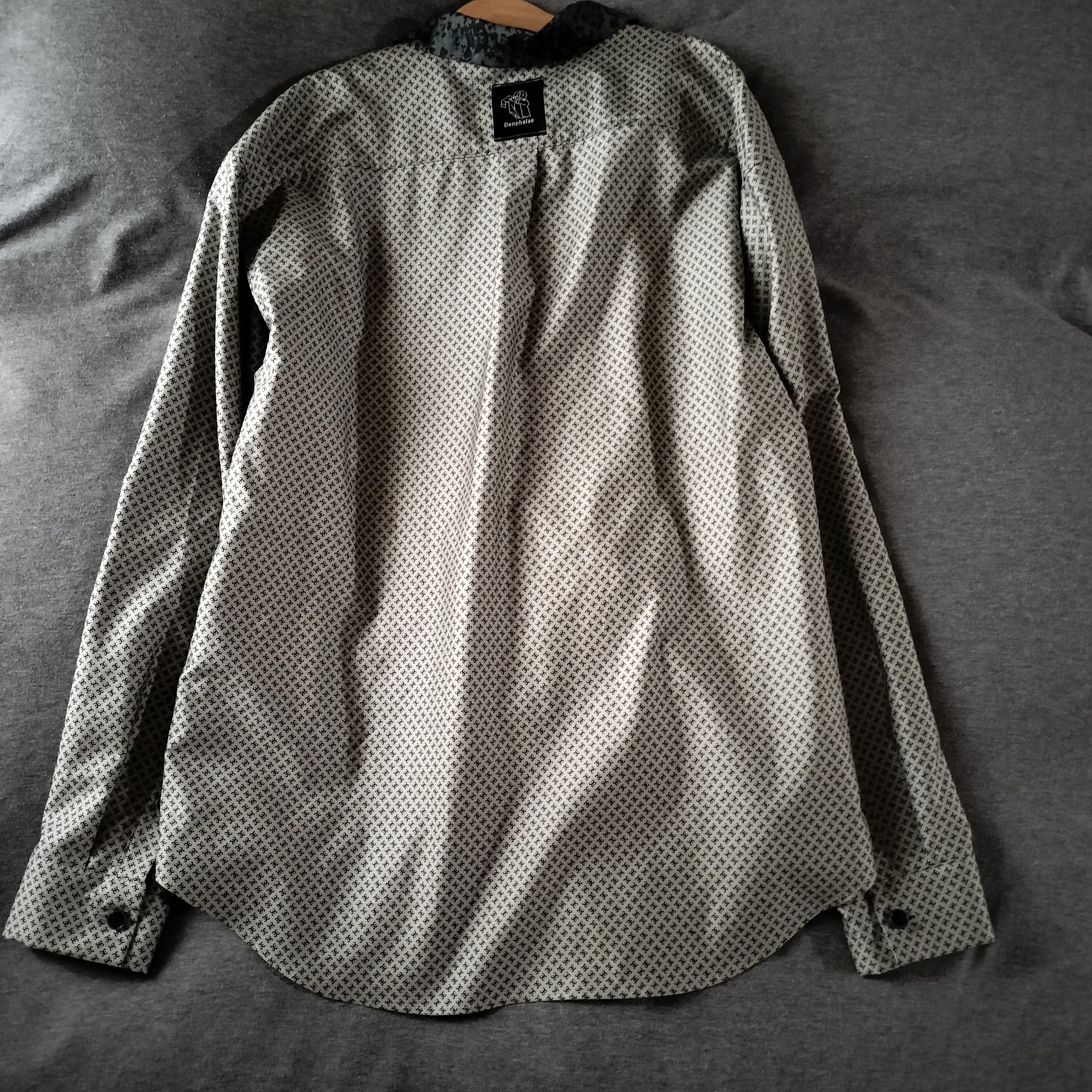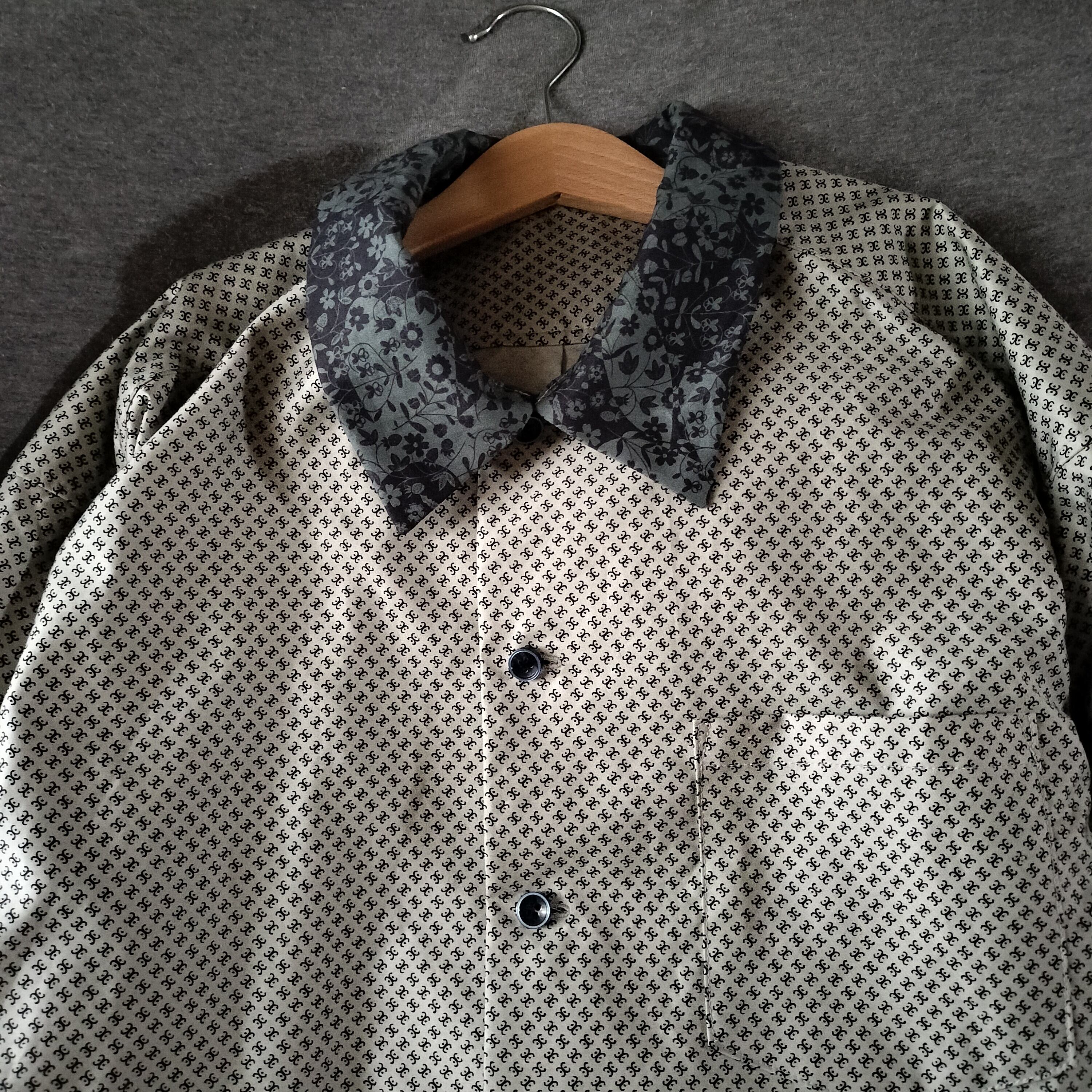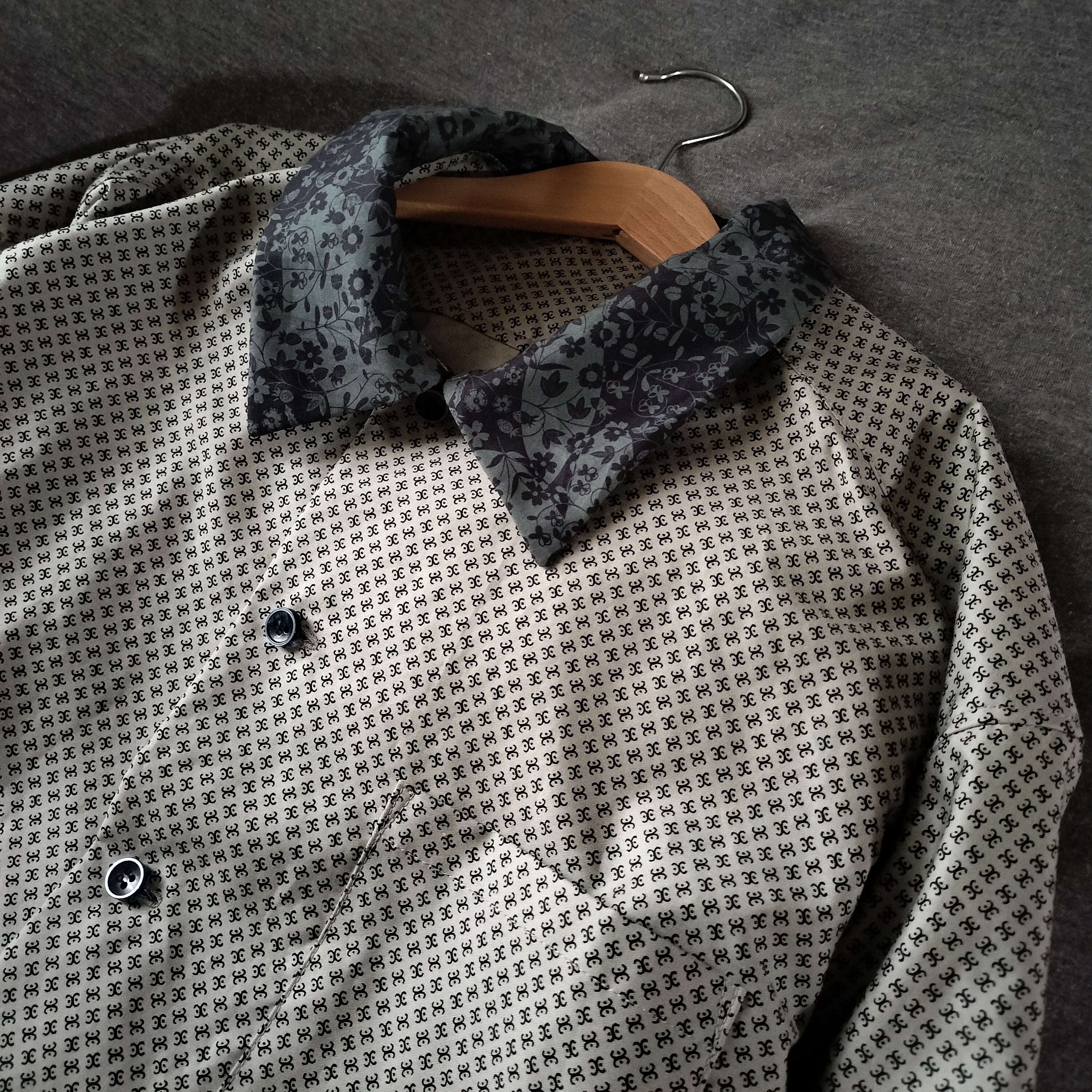 高級生地ブランドのリバティ生地を襟に用いて、アクセントの効いたスタイリッシュなシャツ。