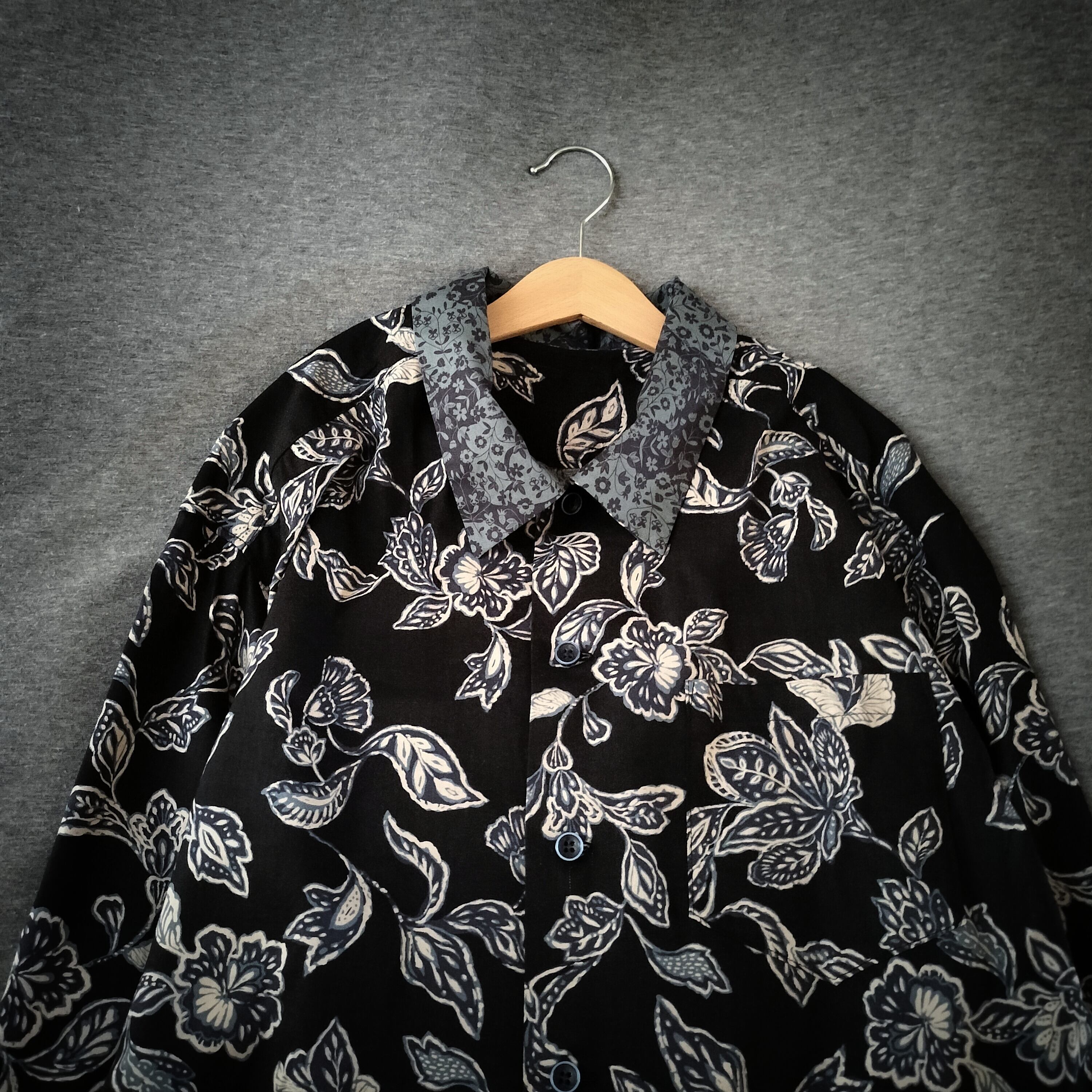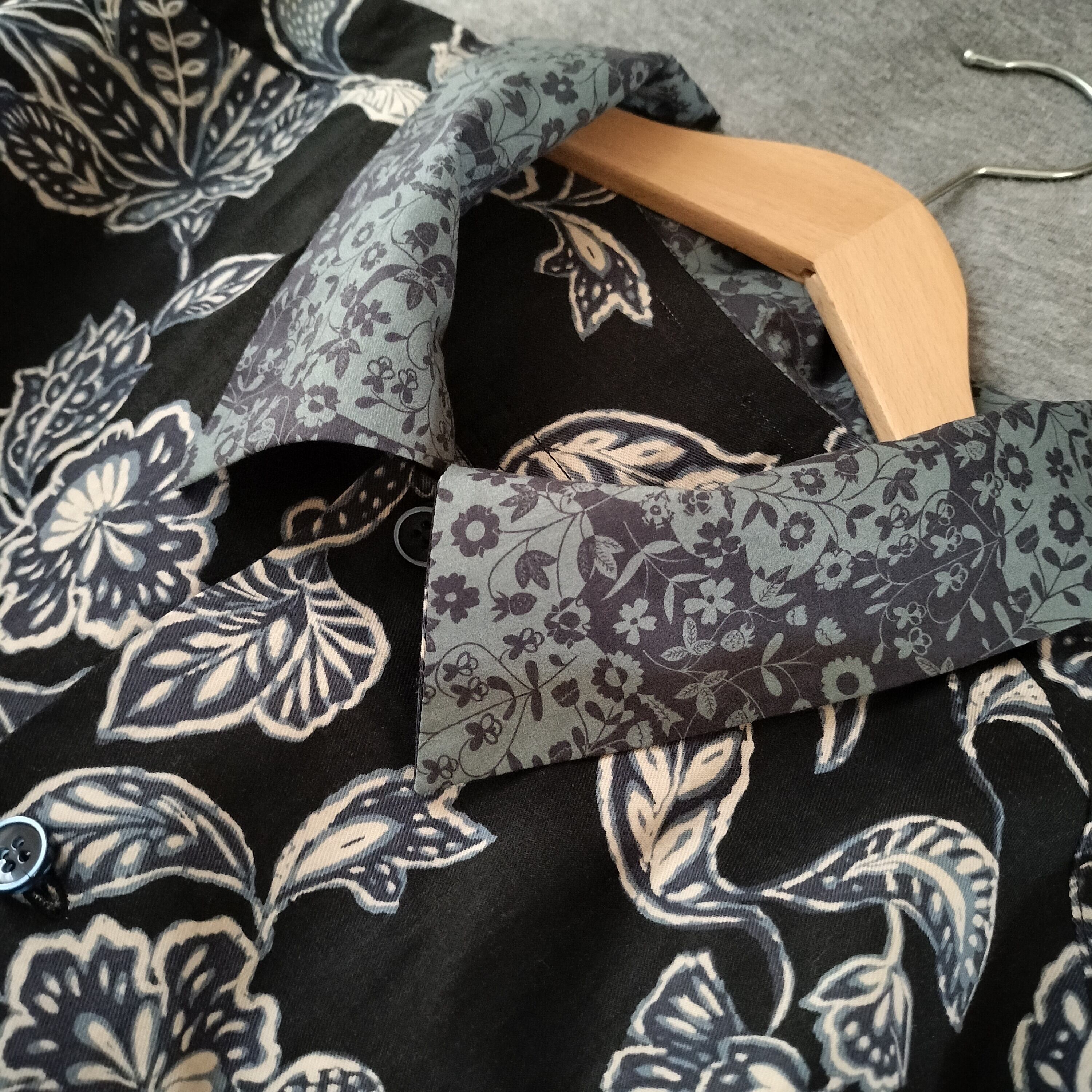 襟とカフスには高級生地ブランド、リバティの生地を使用しています。