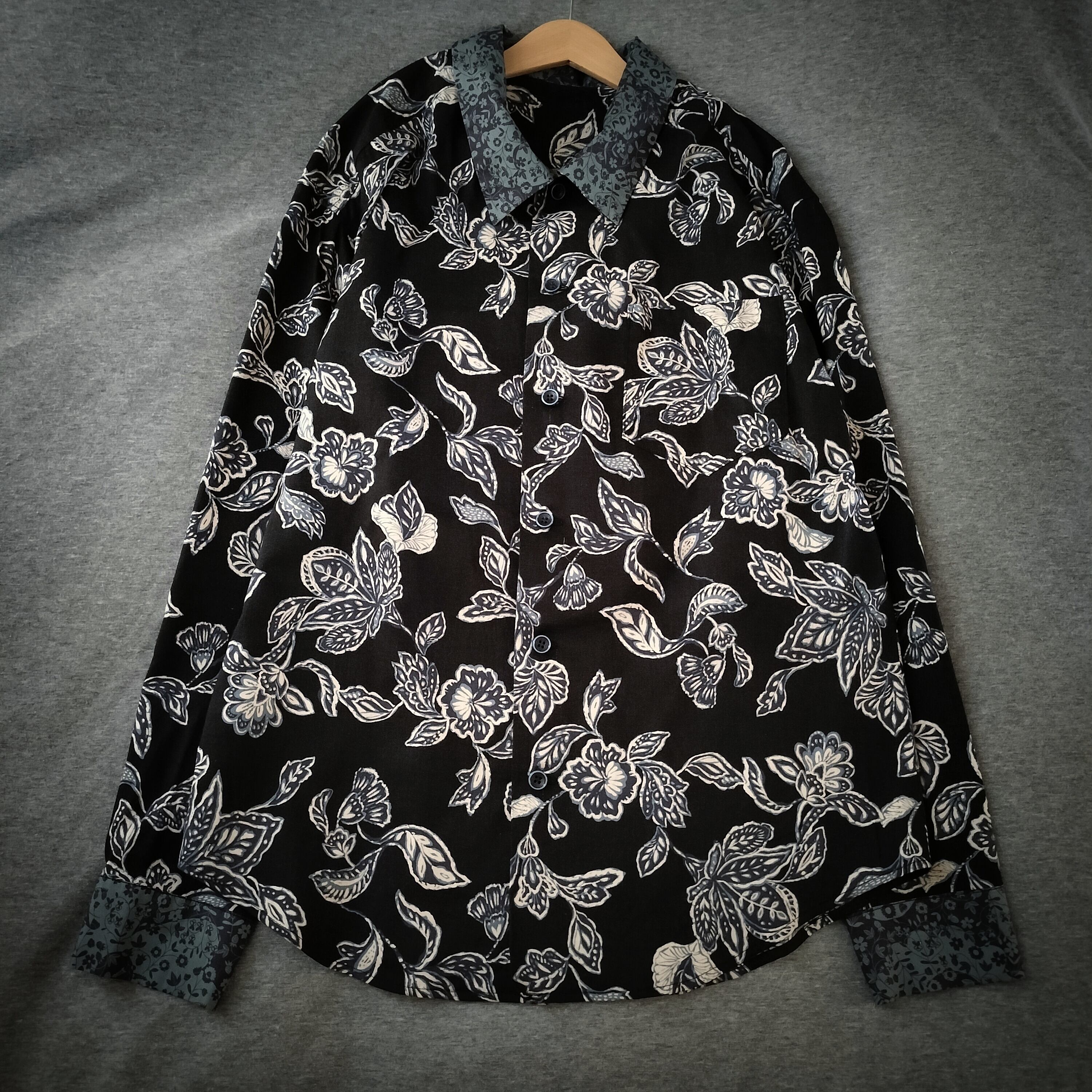 花柄 シック 長袖シャツ シャツ 柄シャツ 個性的 おしゃれ 一点物 男女兼用 綿 古着風 メンズファッション